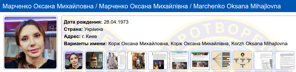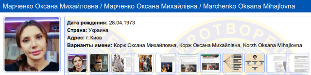Дружину народного депутата, голови політради партії «Опозиційна платформа – За життя» Віктора Медведчука Оксану Марченко внесли в базу центру «Миротворець».