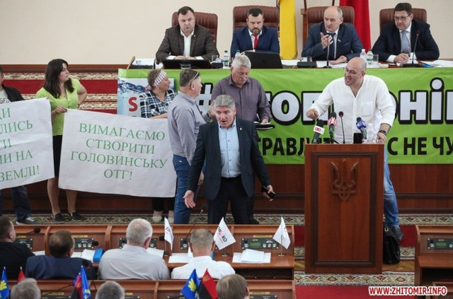 Нагадаємо, Олександр Громов (на фото за трибуною) активно виступає на сесіях обласної та міської рад. Зокрема, чергова сесія Житомирської міськради 27 вересня 2018 року розпочалася з бійки, учасником якої став активіст Олександр Громов: він зірвав зі столу президії плакат з написом «Наталя Леонченко лобіює московський патріархат». Також Олександр Громов входить до складу робочої групи з питання дотримання законодавства при видобуванні піску на території Житомирської області, створеної відповідно до розпорядження голови Житомирської облдержадміністрації від 16 січня 2018 року.