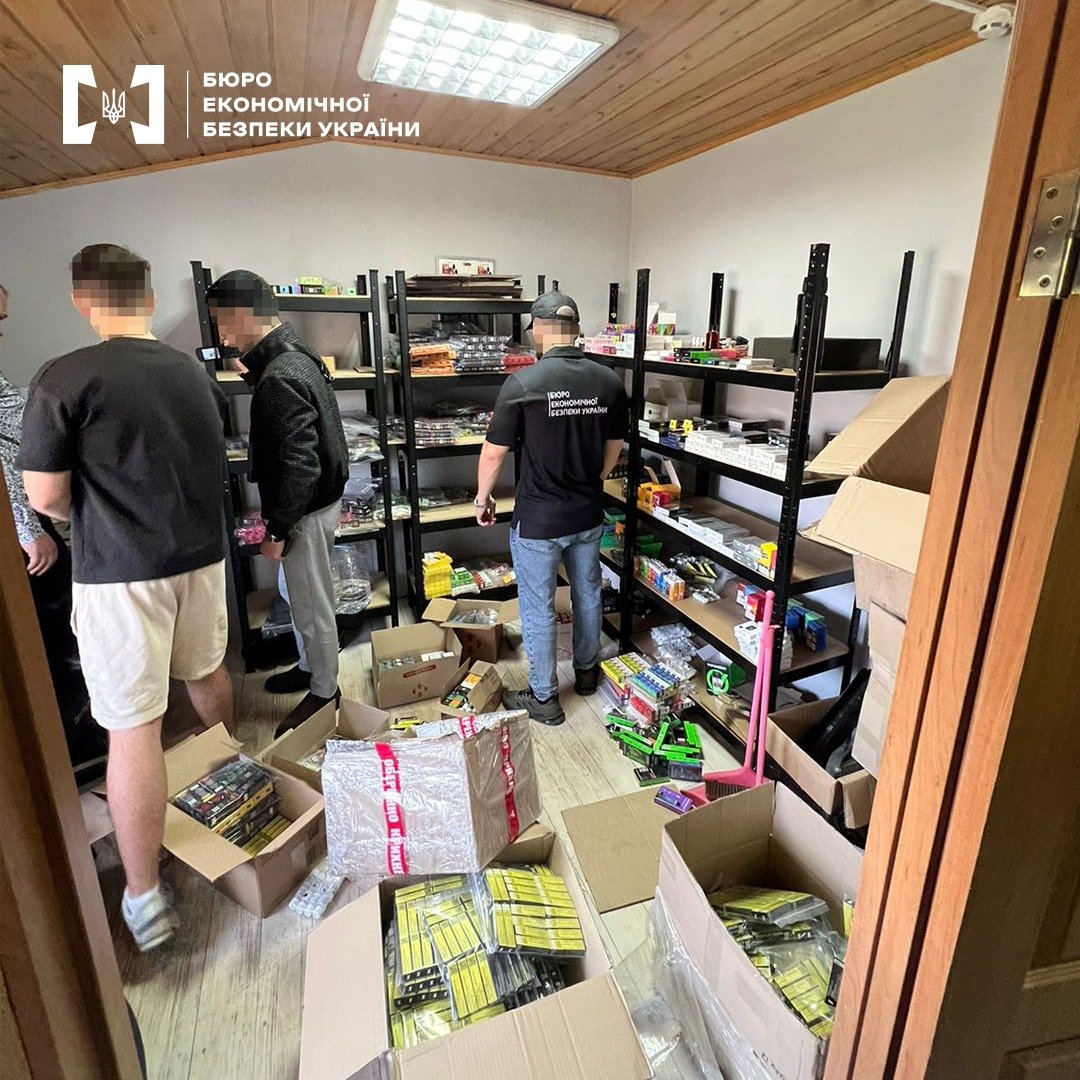 Детективи Бюро провели обшуки в орендованому приміщенні, де зберігався контрафакт та вилучили електронні сигарети й готові рідини до них без марок акцизного податку.