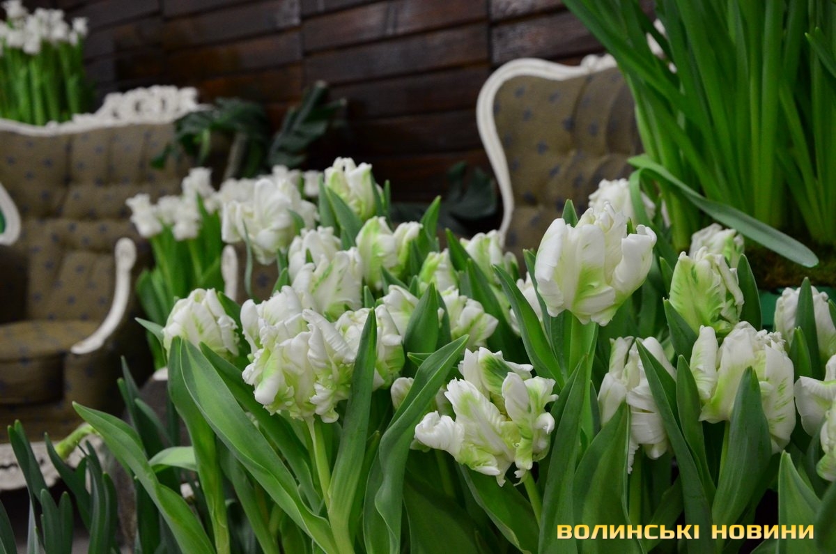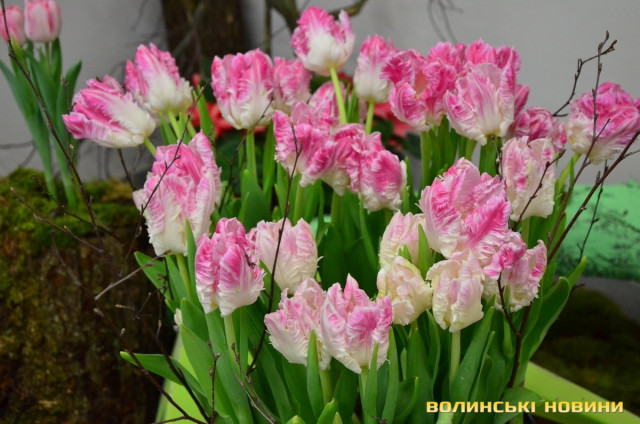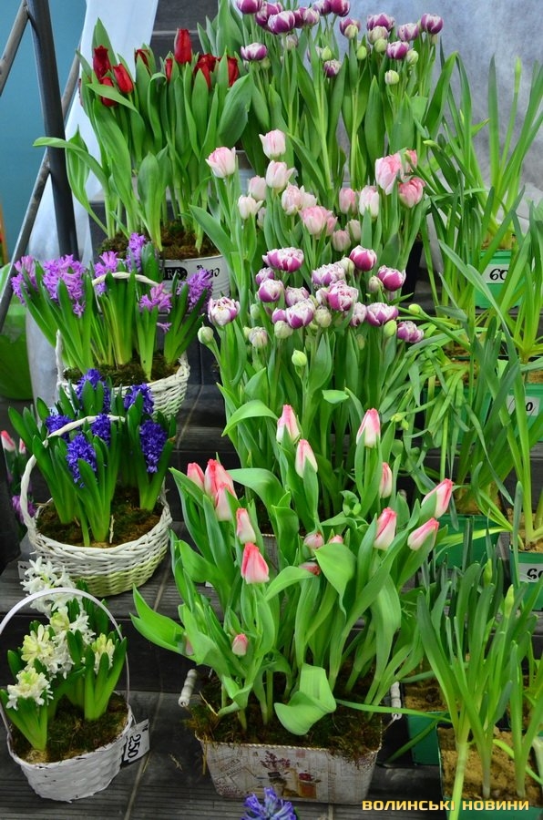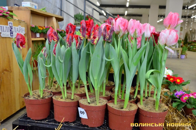 Додала, що ідея влаштувати виставку виникла ще минулого року.«Ми її запозичили в Нідерландах, де до весняних свят організовують різні виставки. А всім відомо, що Нідерланди славляться саме вирощуванням тюльпанів, тому ми часто відвідуємо цю країну. Подумали: чому б і нам до свята не влаштувати щось подібне, аби люди змогли помилуватися красою, отримати задоволення, сфотографуватися та придбати квіти від волинського виробника, а не завезені з закордону. Цього року через карантинні обмеження ми спеціально зробили безоплатний вхід, аби всі могли відвідати виставку, розвантажитися та насолодитися прекрасним», – заохотила директорка.До уваги гостей дійства – 87 сортів тюльпанів. Ексклюзивними новинками є хвилясті та піоновидно-бахромчасті тюльпани, сорти White Liberstar, Crow Dynasty, Mysterious Parrot, Marvel Parrot, Gabbana, Аdore, Brisbane тощо.Тетяна Пашковська зауважила, що всі квіти – тільки з теплиці, тому вдома радуватимуть навіть два тижні. Перед тим, як поставити тюльпани у вазу, порекомендувала обрізати кінчики, аби квіти добре вбирали воду. А гіацинти та примулки, придбані в горщиках, після цвітіння в будинку чи квартирі можна відразу висаджувати на клумбу, адже вони холодостійкі.