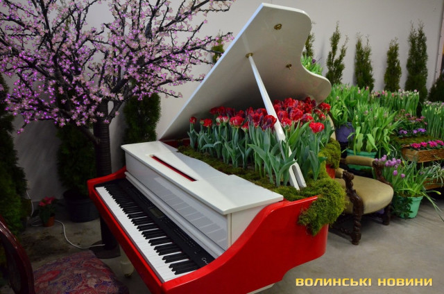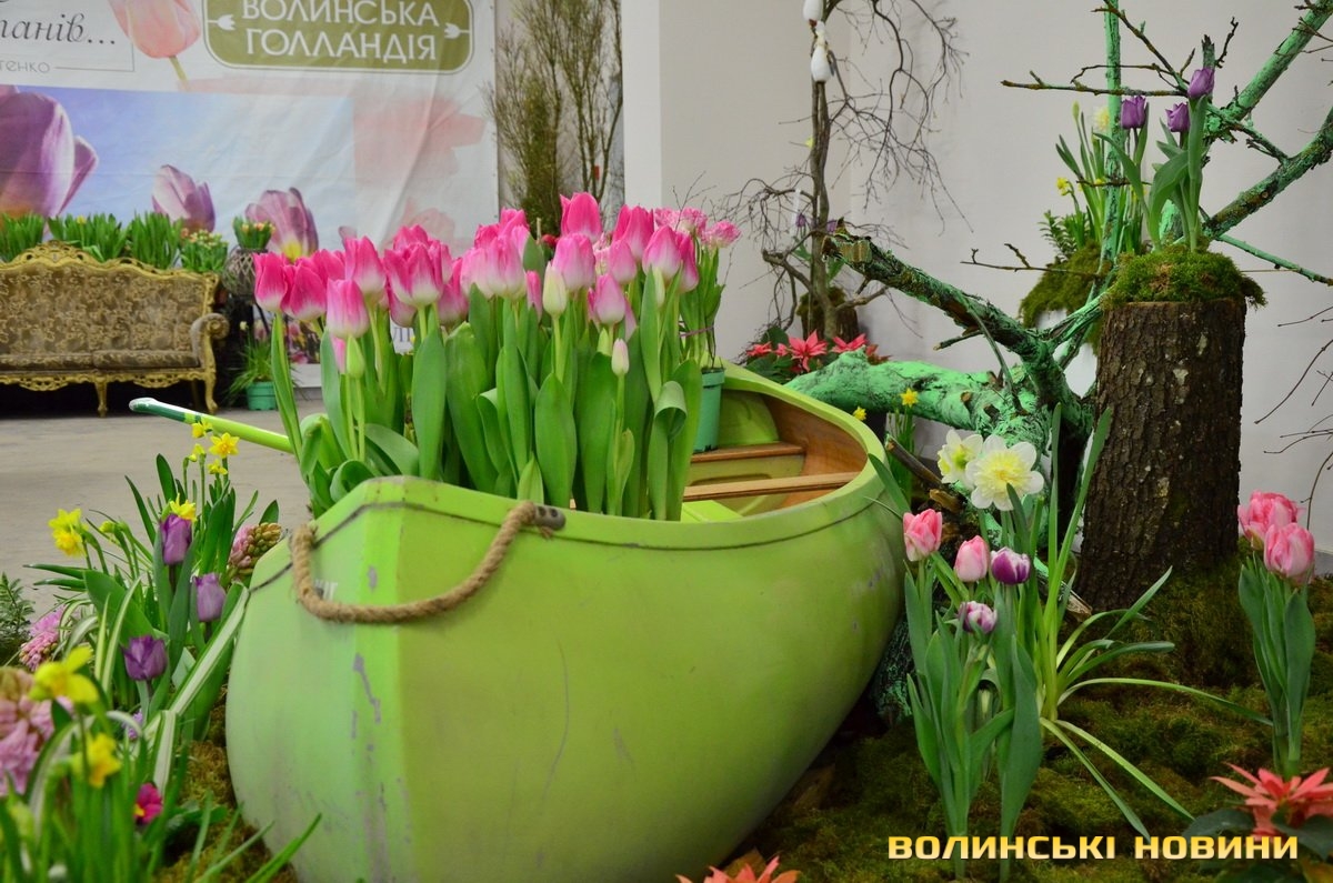 На виставці – чимало фотозон: і човен із квітами, і рояль, і антикварні крісла, оббиті оксамитом, і відра тюльпанів, і сходинки з гіацинтами та примулками, і потаємна скриня, і лісовий куточок, і чарівний годинник.Як розповіла Інформаційному агентству Волинські Новини директорка з виробництва господарства «Лілі-Лайн» Тетяна Пашковська, виставка – це окрема подія, не пов’язана з фестивалем «Волинська Голландія», який підприємство вже традиційно проводить на початку травня.