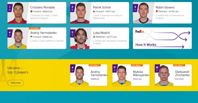 Відразу троє українців потрапили у топ-20 кращих гравців Євро