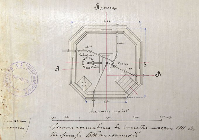 План опалюваної будки над артезіанською криницею Топольницького. Копія з Державного архіву Волинської області