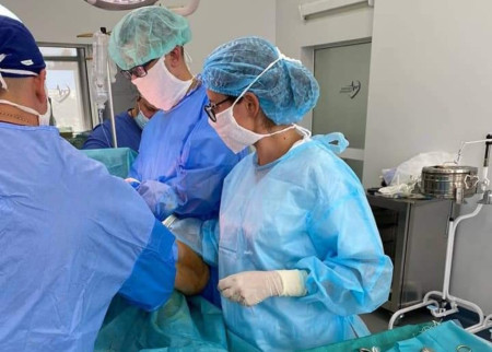 Операцію, яка через свій рівень складності вимагає високопрофесійного підходу, проводили травматологи – Тарас Борисович Босий та Іван Анатолійович Лотоцький. В результаті на місце ураженого суглобу було встановлено ендопротез виробництва відомої швейцарської фірми MATHYS.