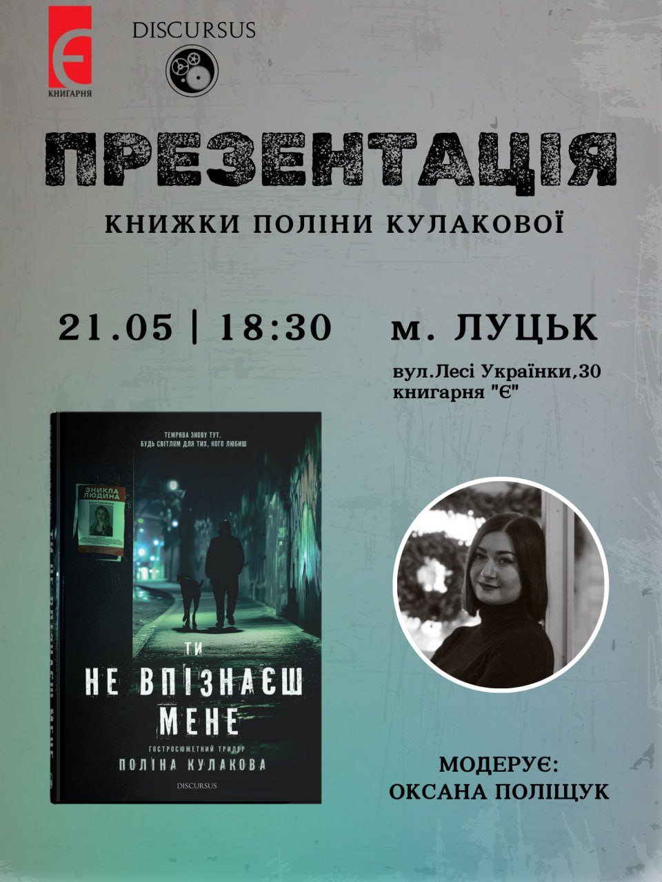 Видавництво Discursus та Книгарня «Є» запрошують на презентацію нової книжки Поліни Кулакової. Модеруватиме зустріч Оксана Поліщук.