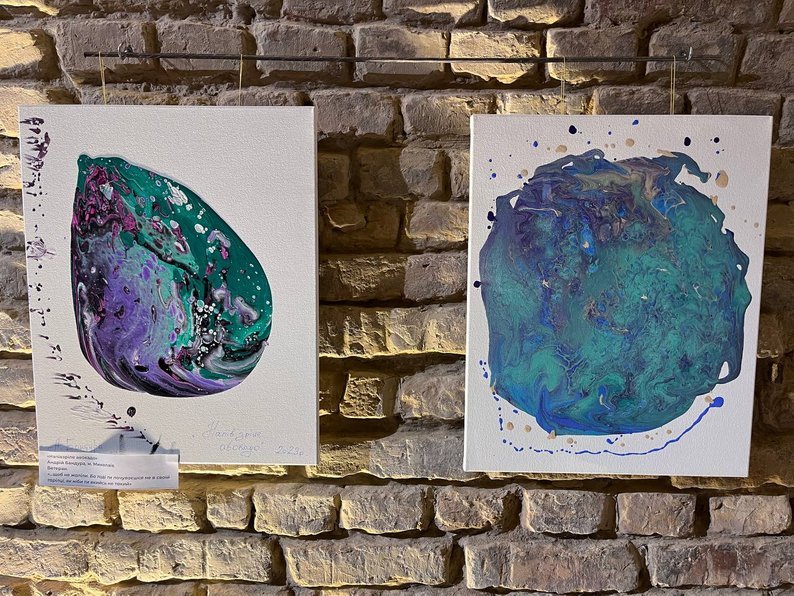 «На базі центру реабілітації різні такі заходи психологічної підтримки, у тому числі неформальні. Один із таких елементів – це арттерапія. Ми доповнили фото хлопців, які проходили реабілітацію. Дуже хочеться, щоб такі заходи були таким собі неформальним місточком між цивільними та військовими», – сказала вона.Психологиня зазначила, що картини військових під супроводом художника Дмитра Зінька та фахівців центру реабілітації учасників бойових дій у Луцьку створили в стилі флюїд-арт.Читати ще: Ляльки-мотанки з Бахмута: в центрі Луцька збирали кошти на потреби 14-ї бригади