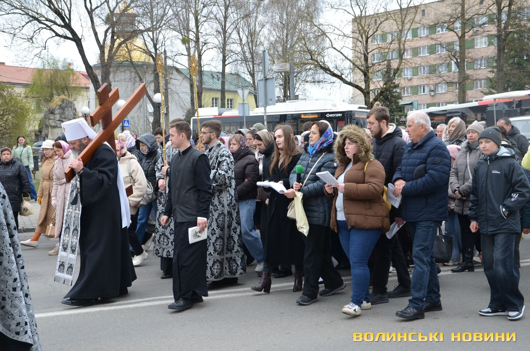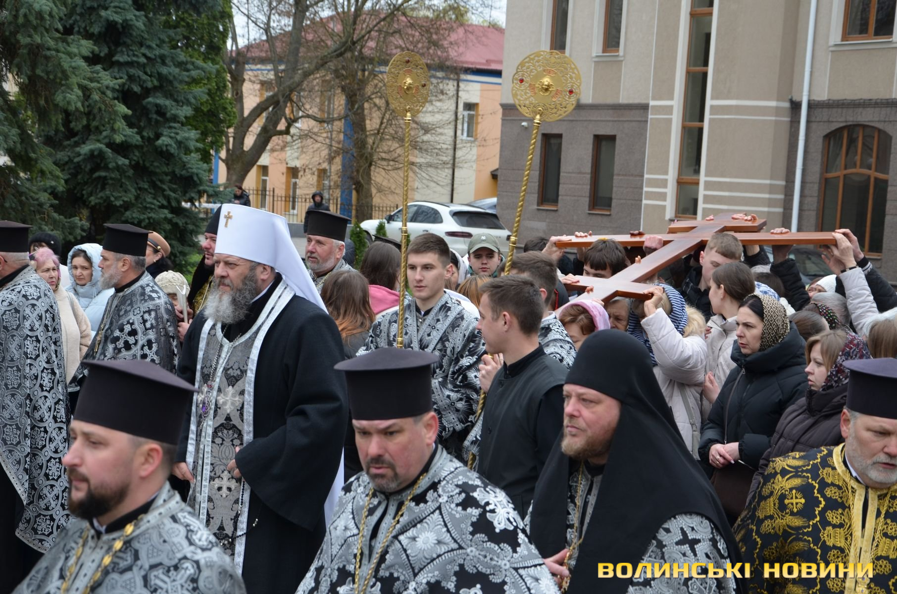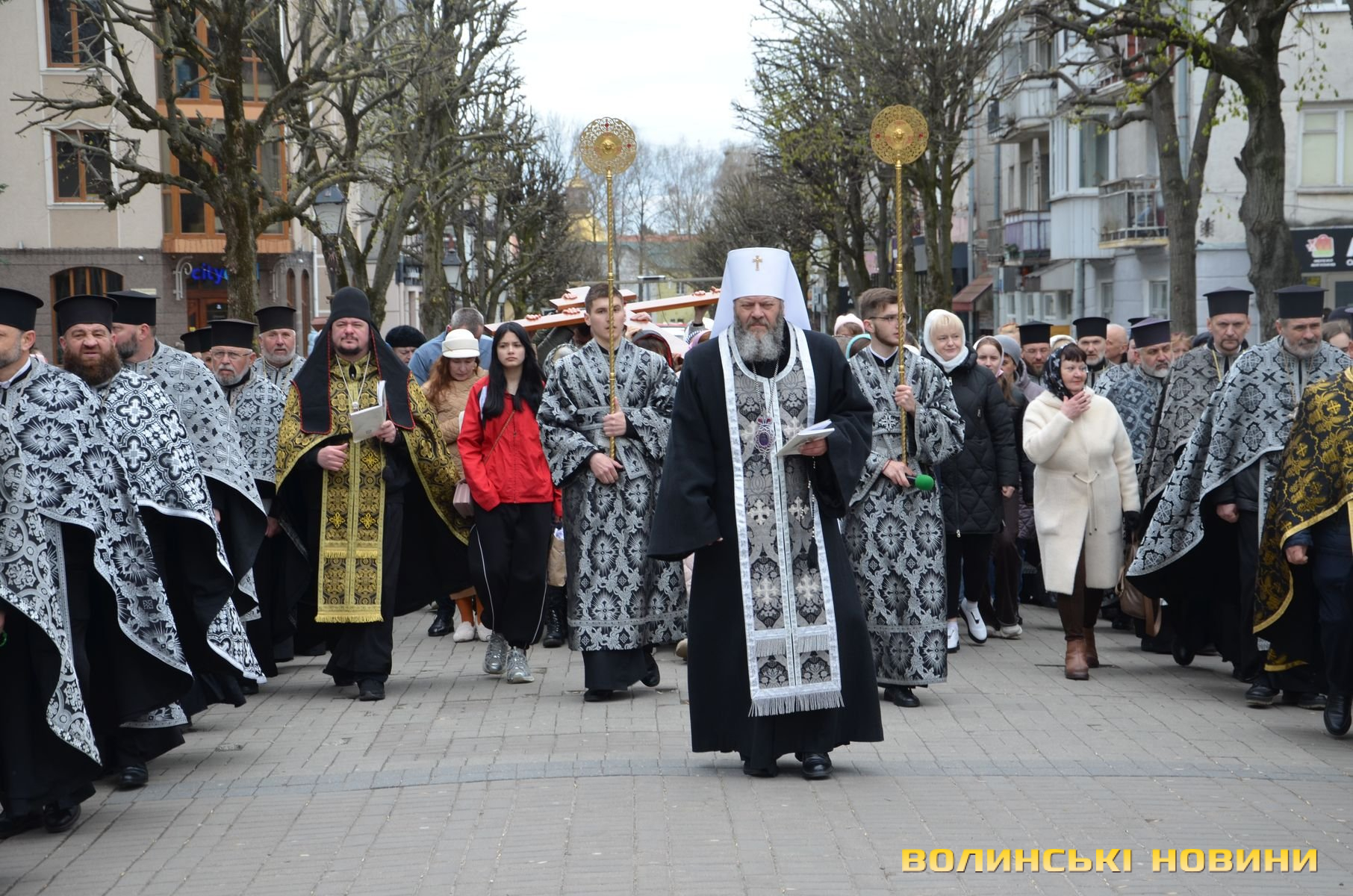 У Страсну п’ятницю в обласному центрі Волині відбулася хресна хода з 12-ма стояннями, які відображають останні події в земному житті Христа. До традиційного заходу долучилися чимало містян і представників духовенства. Очолив процесію митрополит Луцький і Волинський Михаїл, взявши на плече великий хрест.