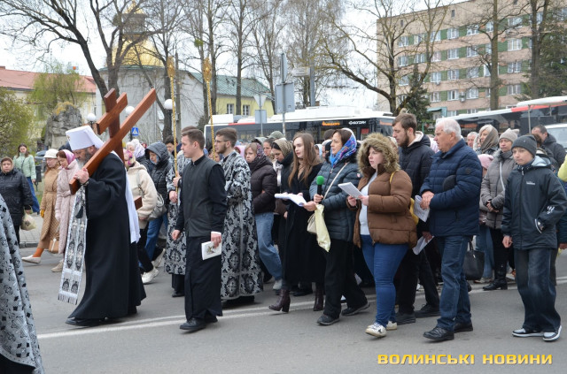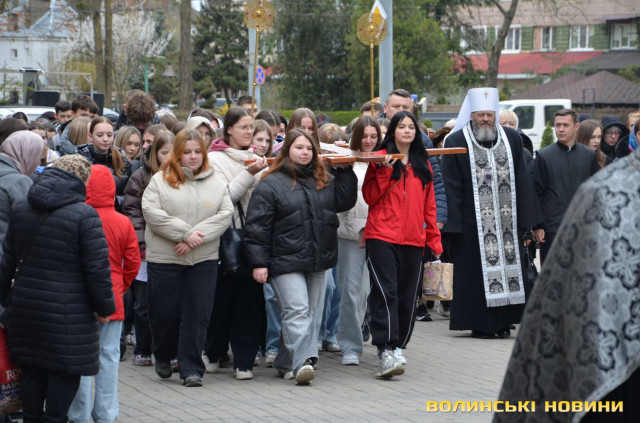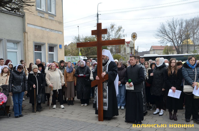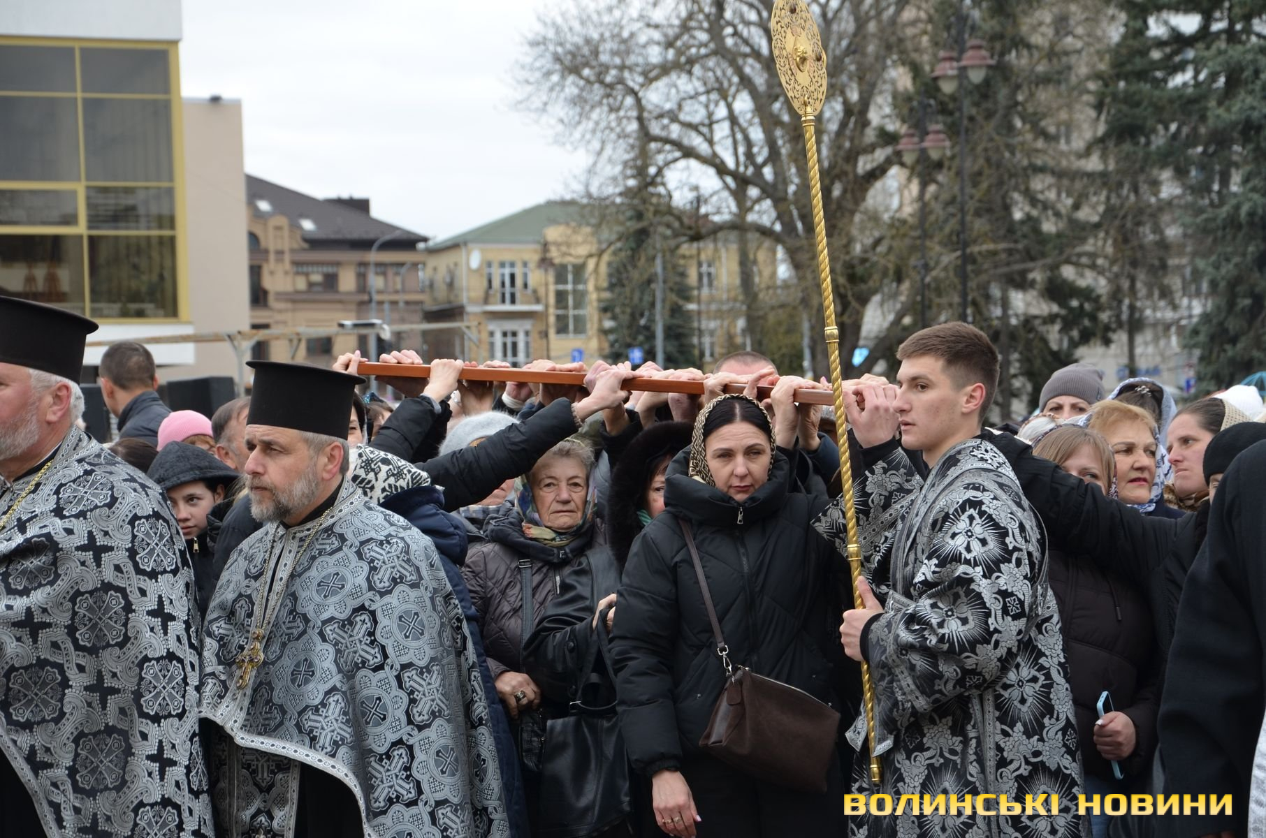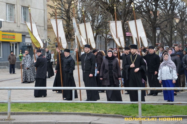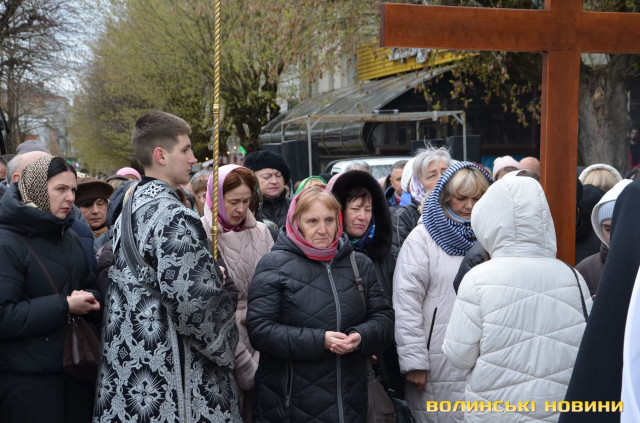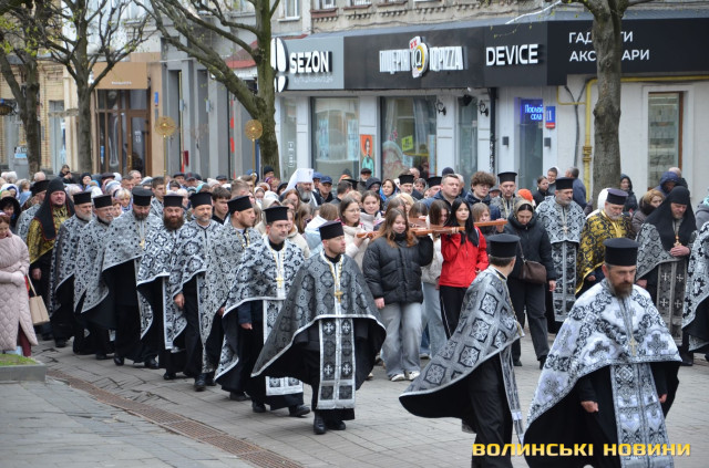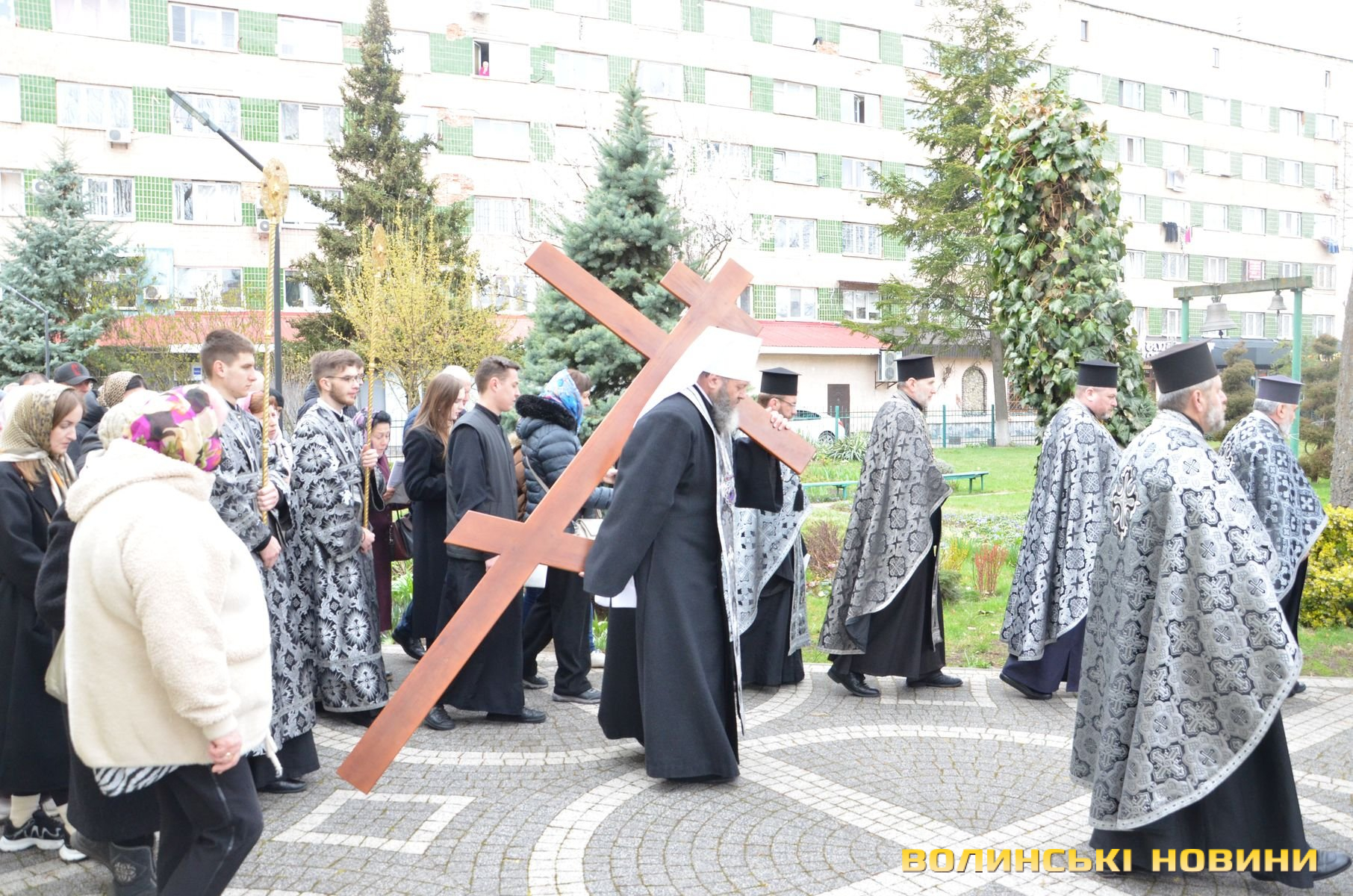 У Страсну п’ятницю в обласному центрі Волині відбулася хресна хода з 12-ма стояннями, які відображають останні події в земному житті Христа. До традиційного заходу долучилися чимало містян і представників духовенства. Очолив процесію митрополит Луцький і Волинський Михаїл, взявши на плече великий хрест.