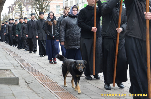 Колона стартувала від Хрестовоздвиженської церкви, що на вулиці Данила Галицького.Читати ще: «Москви більше тут не буде»: як Епіфаній провів богослужіння в Успенському соборі Володимира. Фоторепортаж