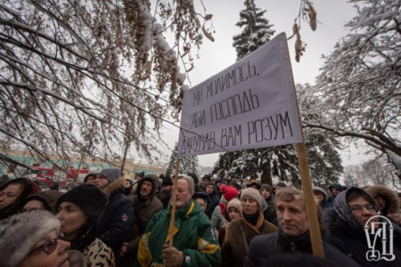 в робочий день поприходили мітингувати з готовими однаковими плакатами. молодці. 200 гривень заробили.