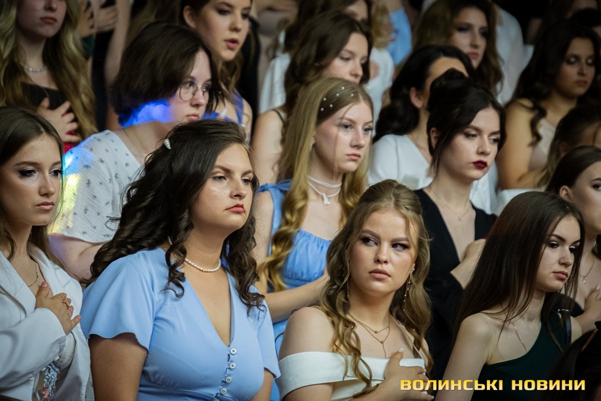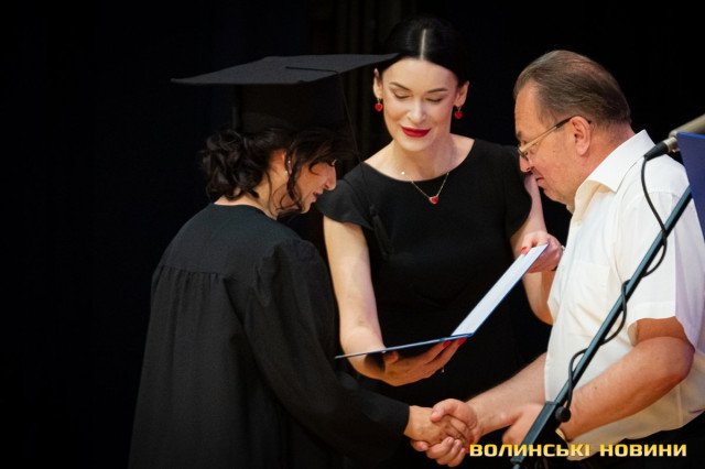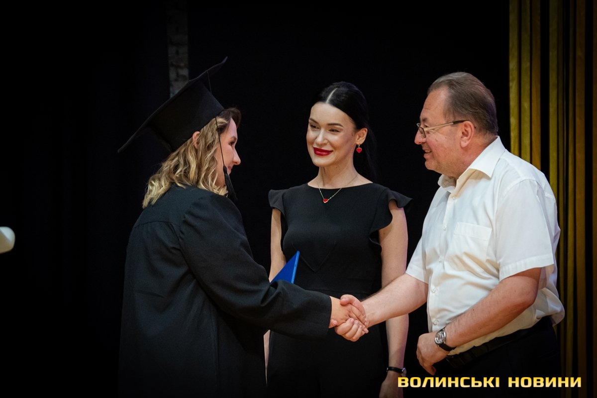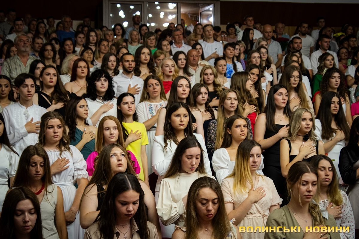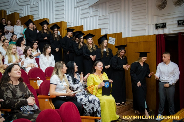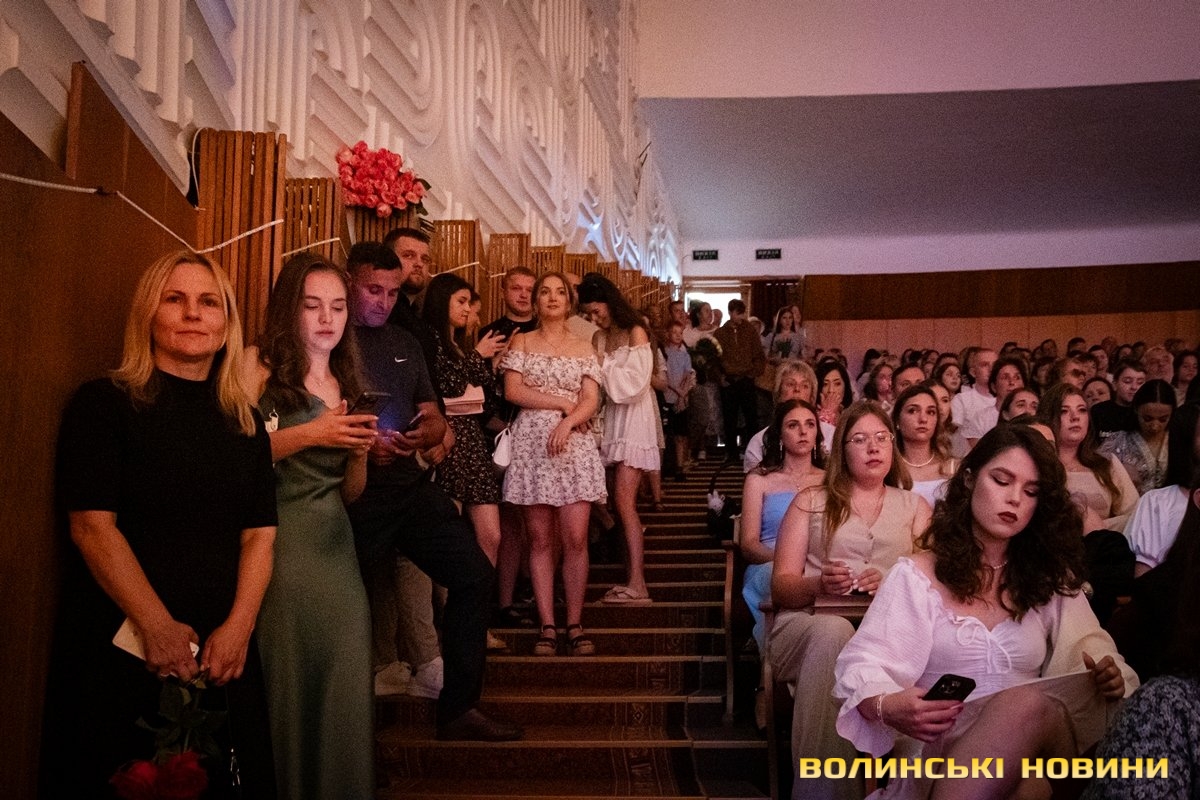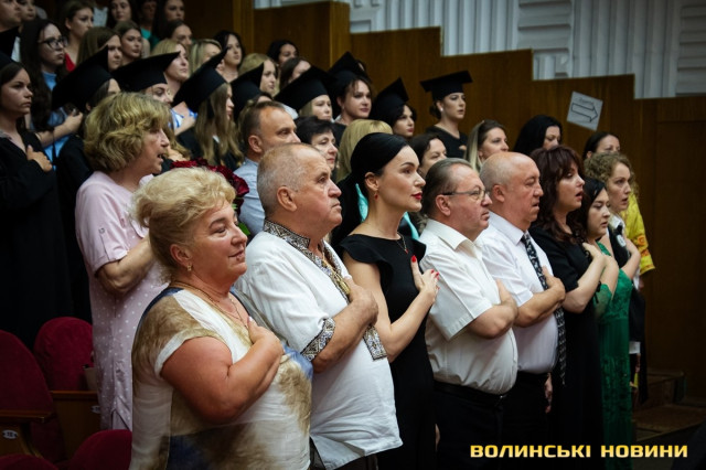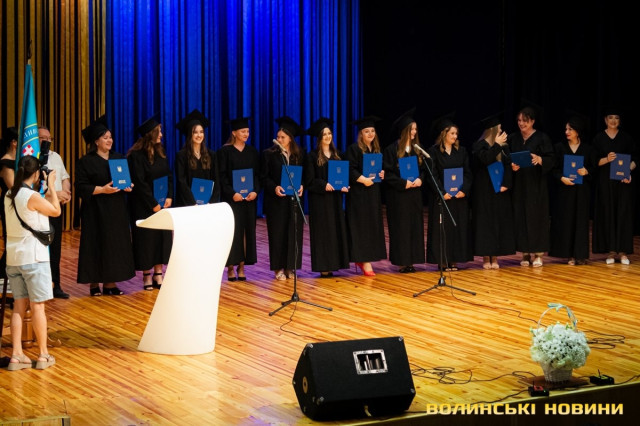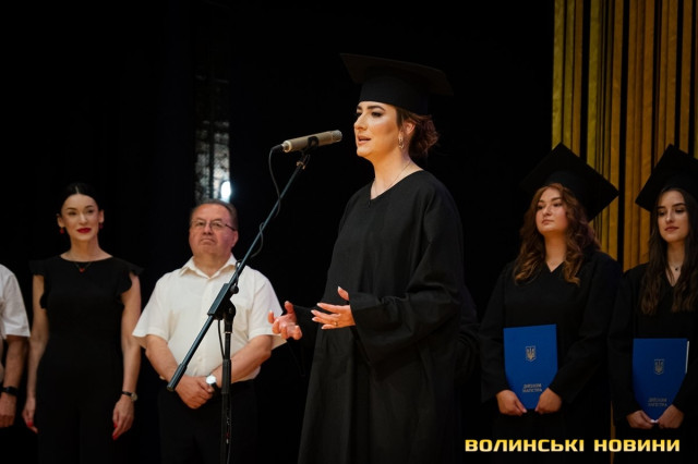 «Від імені колективу маю сьогодні честь привітати вас із однією з найяскравіших подій у вашому житті – отриманні диплома. Дорогі наші випускники, дякуємо вам за те, що обрали місцем свого професійного, духовного становлення Волинський медичний інститут. Заклад має свою історію, яка розпочалася у 1944 році. І нині ця історія отримала нове продовження.За кілька хвилин вам вручать дипломи, а завтра у вас настане новий етап життя – наче відкриється нова чиста сторінка. І хай ваші здобутки, ваші амбіції створять вам найкращу долю, адже ви обрали нелегку професію. Медицина – це жертовність, постійна відповідальність, це безмежна любов до людини і до світу», – не стримувала емоцій ректорка Волинського медінституту Тетяна Пастрик.Викладачі навчального закладу вітали колишніх студентів-магістрів, а бакалаврів запросили продовжити навчання. Побажання в усіх єдині: миру Україні, здоров’я, сил для ефективного служіння суспільству. А ще – щирі слова подяки нашим Героям, які своїми життями зупиняють агресора. На превеликий жаль, серед загиблих воїнів є і колишні студенти інституту. Їхню пам'ять присутні вшанували хвилиною мовчання та квітами…Читати ще: У Волинському медінституті − перший випуск екстрених медичних техніків