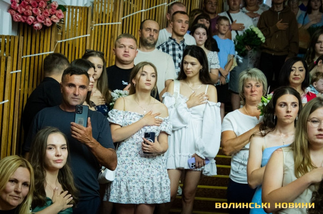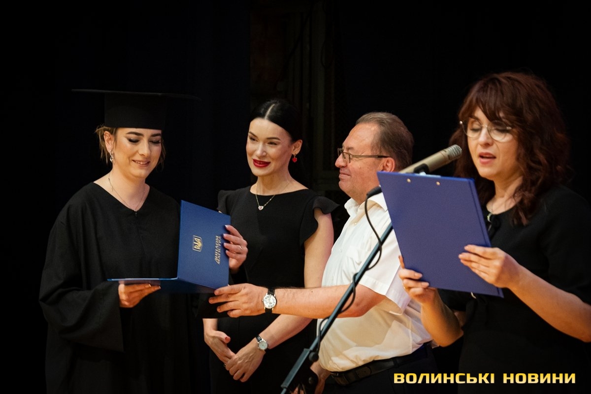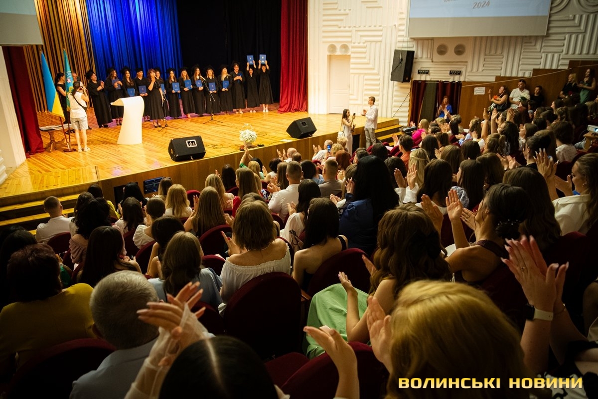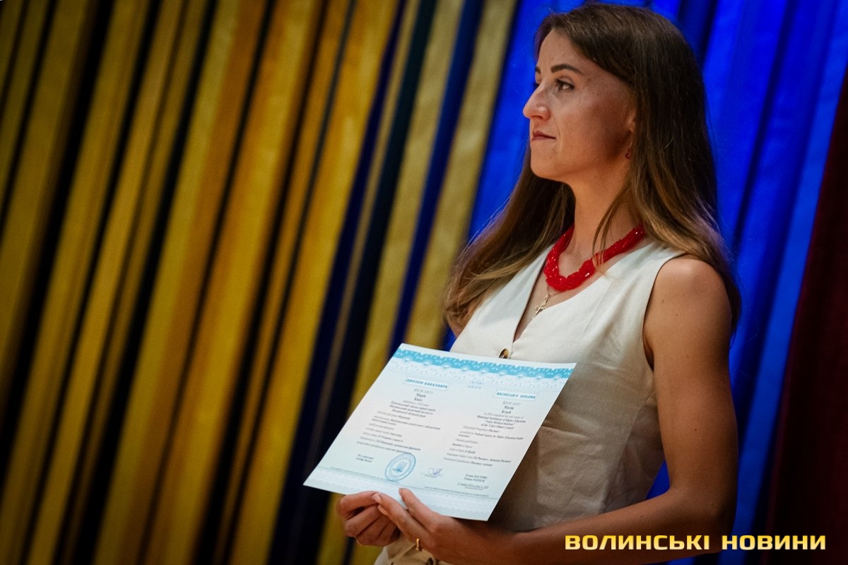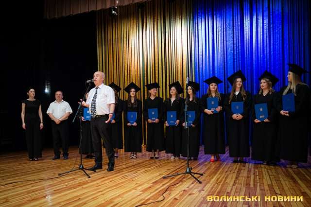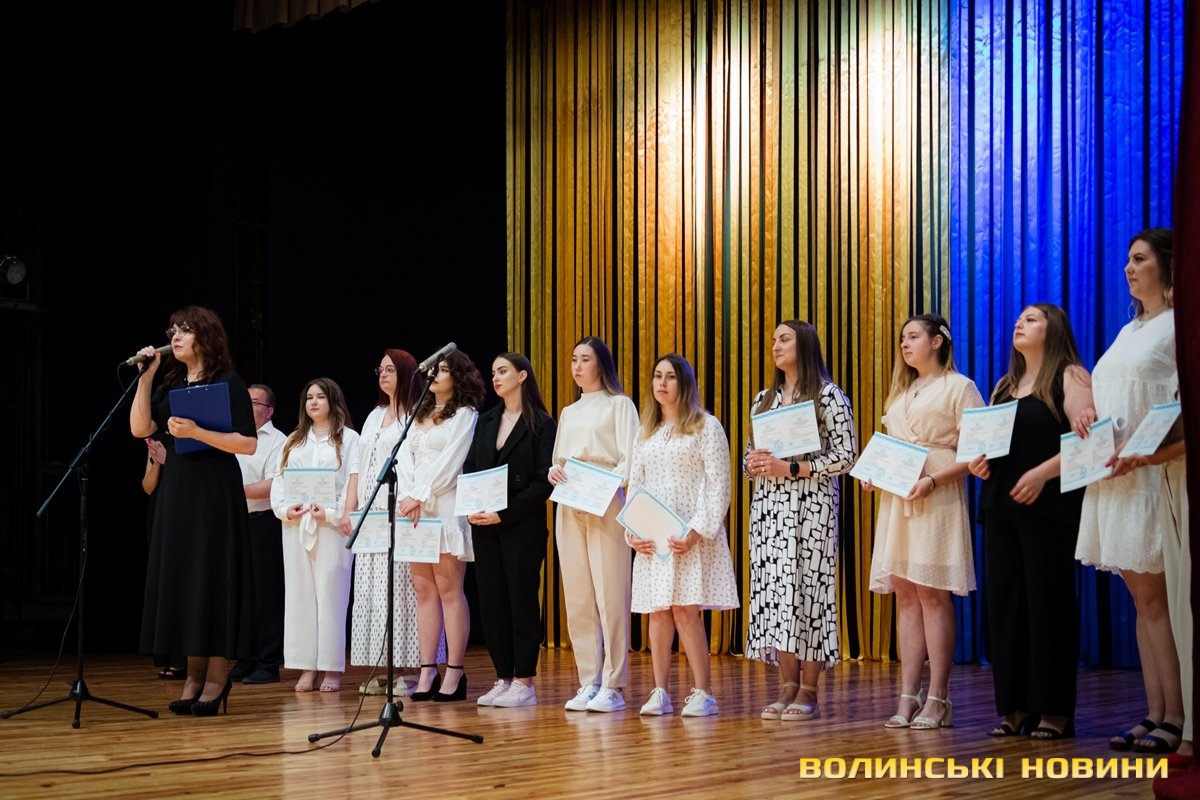 «Від імені колективу маю сьогодні честь привітати вас із однією з найяскравіших подій у вашому житті – отриманні диплома. Дорогі наші випускники, дякуємо вам за те, що обрали місцем свого професійного, духовного становлення Волинський медичний інститут. Заклад має свою історію, яка розпочалася у 1944 році. І нині ця історія отримала нове продовження.За кілька хвилин вам вручать дипломи, а завтра у вас настане новий етап життя – наче відкриється нова чиста сторінка. І хай ваші здобутки, ваші амбіції створять вам найкращу долю, адже ви обрали нелегку професію. Медицина – це жертовність, постійна відповідальність, це безмежна любов до людини і до світу», – не стримувала емоцій ректорка Волинського медінституту Тетяна Пастрик.Викладачі навчального закладу вітали колишніх студентів-магістрів, а бакалаврів запросили продовжити навчання. Побажання в усіх єдині: миру Україні, здоров’я, сил для ефективного служіння суспільству. А ще – щирі слова подяки нашим Героям, які своїми життями зупиняють агресора. На превеликий жаль, серед загиблих воїнів є і колишні студенти інституту. Їхню пам'ять присутні вшанували хвилиною мовчання та квітами…Читати ще: У Волинському медінституті − перший випуск екстрених медичних техніків
