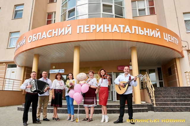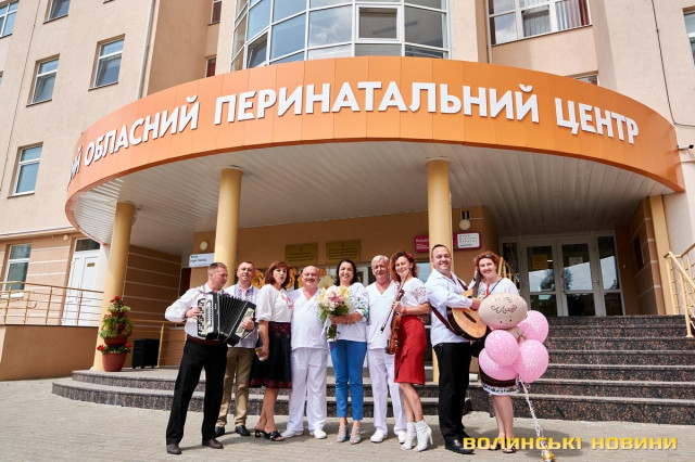 Вітали колегу з донечкою: волинський гурт влаштував концерт під вікнами перинатального центру. Фото
