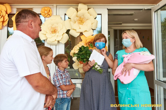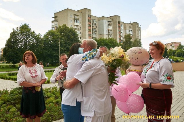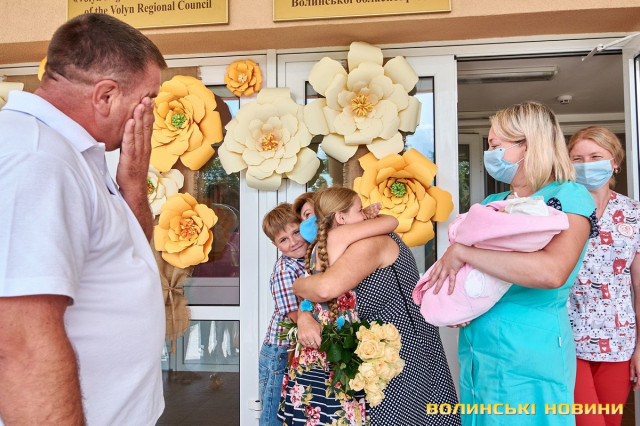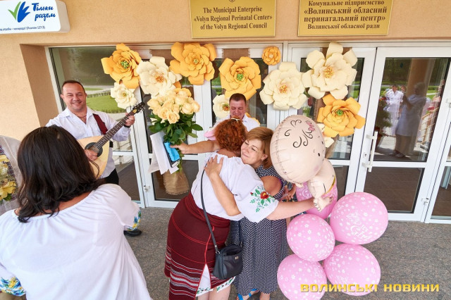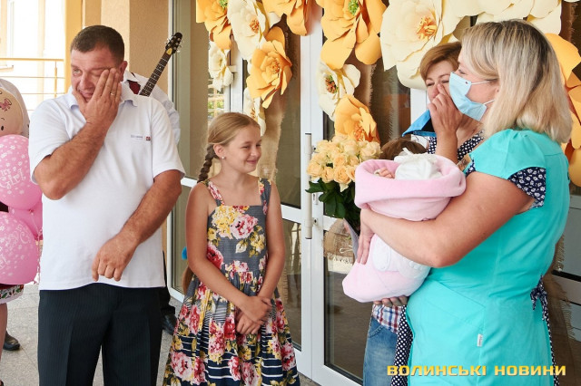 На призначену годину під Волинським обласним перинатальним центром зібралися учасники «Чачки» – у народному вбранні та з інструментами. Насамперед, вони привітали тата Анатолія Панасюка з поповненням у родині та почали готуватися до зустрічі. Коли ж у дверях медзакладу з’явилася Любов Панасюк, розпочався справжній музичний виступ: з віршованими побажаннями, жартами та народною піснею. Усе, як відзначали гості-глядачі, наче на весіллі!Таке масштабне дійство стало несподіванкою для мами трьох чудових діток Любові Панасюк, яка співає у гурті з часу його заснування (а це вже більше 20 років). Каже, що скучила за усіма надзвичайно. І хоч колеги про це не попереджали, у глибині души на щось подібне чекала. «Адже ми одна велика родина. Всі один за одного завжди переживаємо», – пояснює Любов Панасюк. Жартує, що вдома побуде зовсім трішки, бо повертається у «Чачку» співати, а маленьку донечку буде доглядати тато.Анатолія Панасюка такі труднощі не лякають. Він переконаний, що справиться з непростим завданням. «Досвід є. Старших Катрусю і Максима виховали. То й Софійку виростимо!» До речі, ім’я для донечки обирав саме він. Пояснює, що просто прийшло на думку і сподобалося, та й бабусю його так звали.Також Анатолій та Любов Панасюки разом із артистами дякували усьому персоналу перинатального центру за чуйність, турботу та високий фаховий рівень. І, на останок, разом із традиційними побажаннями здоров’я, подарували медикам щире: «Многая літа!»
