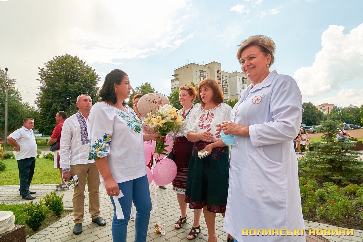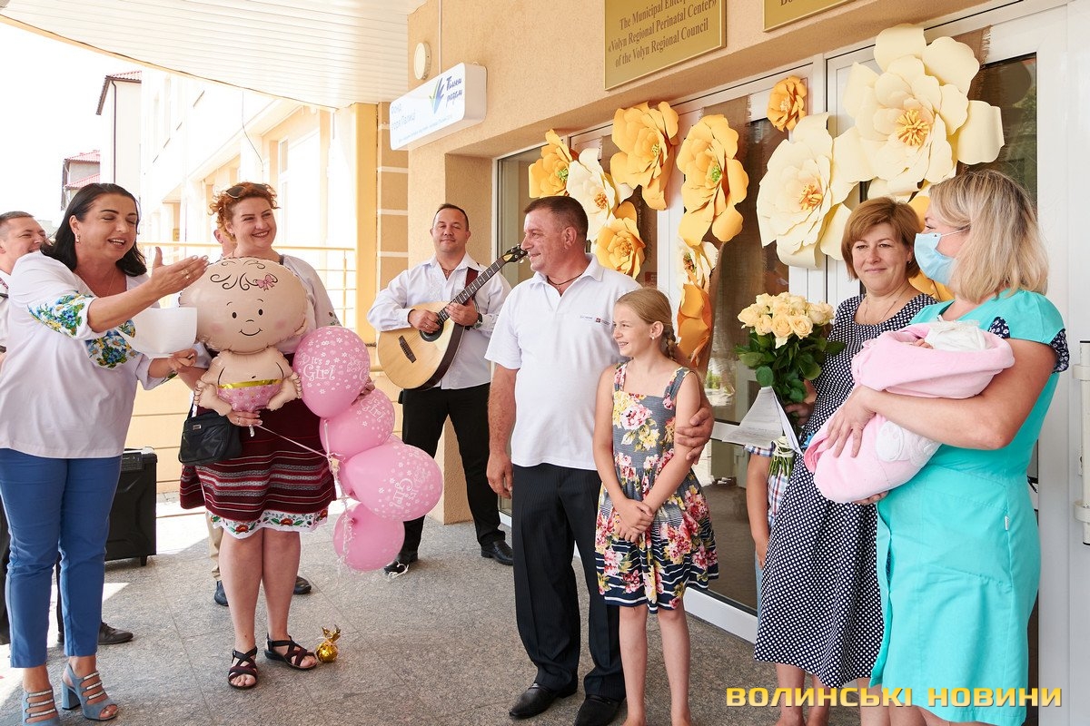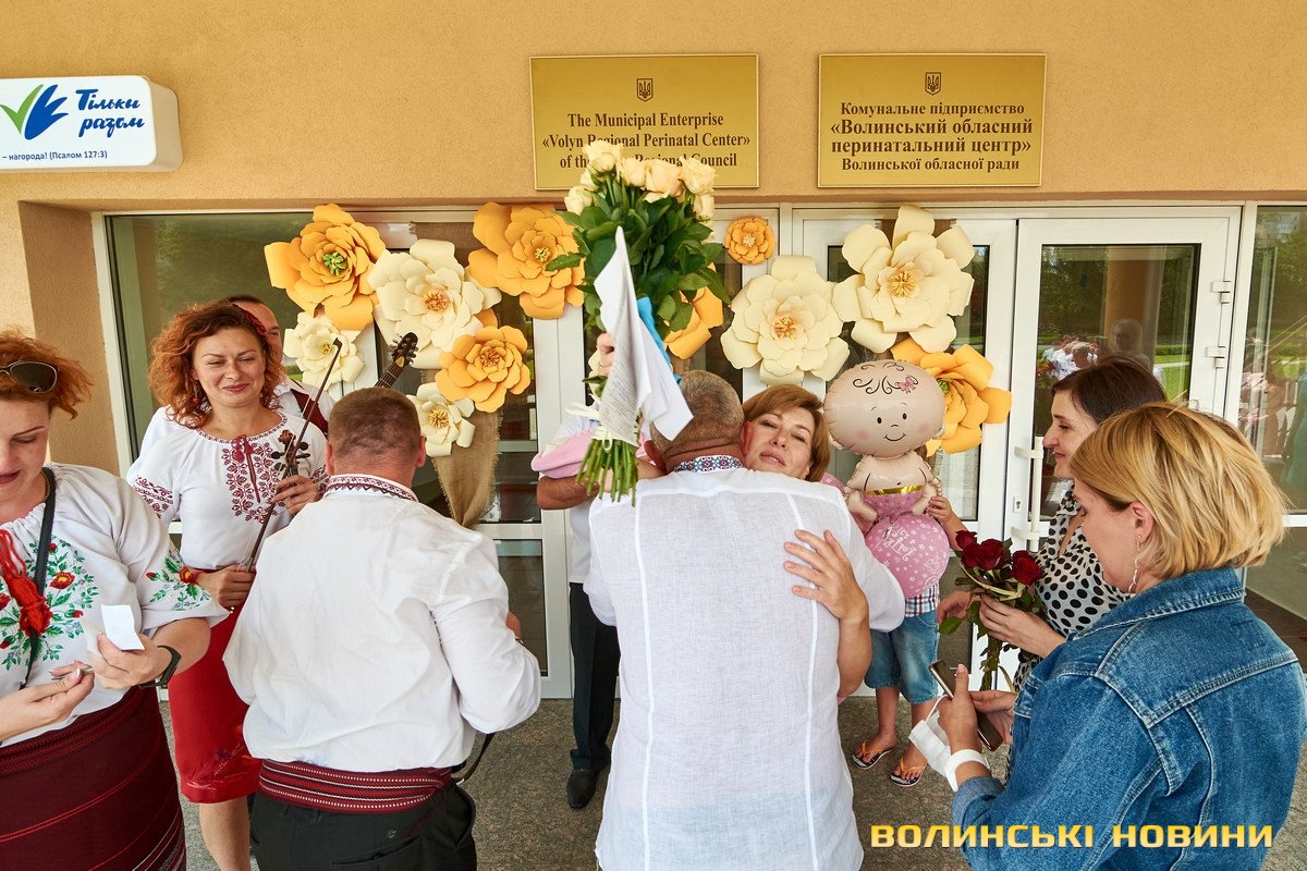 На призначену годину під Волинським обласним перинатальним центром зібралися учасники «Чачки» – у народному вбранні та з інструментами. Насамперед, вони привітали тата Анатолія Панасюка з поповненням у родині та почали готуватися до зустрічі. Коли ж у дверях медзакладу з’явилася Любов Панасюк, розпочався справжній музичний виступ: з віршованими побажаннями, жартами та народною піснею. Усе, як відзначали гості-глядачі, наче на весіллі!Таке масштабне дійство стало несподіванкою для мами трьох чудових діток Любові Панасюк, яка співає у гурті з часу його заснування (а це вже більше 20 років). Каже, що скучила за усіма надзвичайно. І хоч колеги про це не попереджали, у глибині души на щось подібне чекала. «Адже ми одна велика родина. Всі один за одного завжди переживаємо», – пояснює Любов Панасюк. Жартує, що вдома побуде зовсім трішки, бо повертається у «Чачку» співати, а маленьку донечку буде доглядати тато.Анатолія Панасюка такі труднощі не лякають. Він переконаний, що справиться з непростим завданням. «Досвід є. Старших Катрусю і Максима виховали. То й Софійку виростимо!» До речі, ім’я для донечки обирав саме він. Пояснює, що просто прийшло на думку і сподобалося, та й бабусю його так звали.Також Анатолій та Любов Панасюки разом із артистами дякували усьому персоналу перинатального центру за чуйність, турботу та високий фаховий рівень. І, на останок, разом із традиційними побажаннями здоров’я, подарували медикам щире: «Многая літа!»