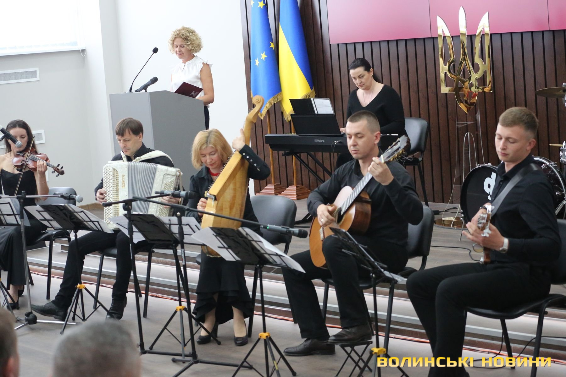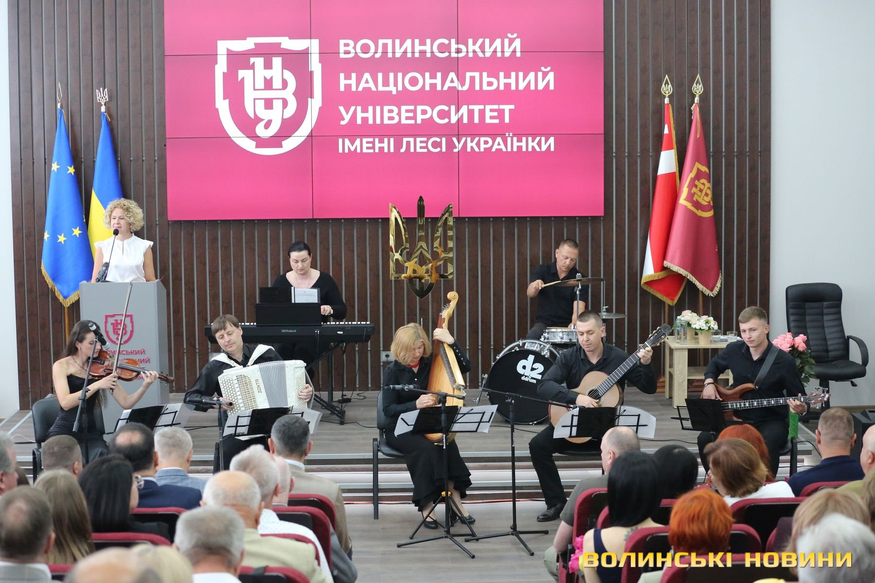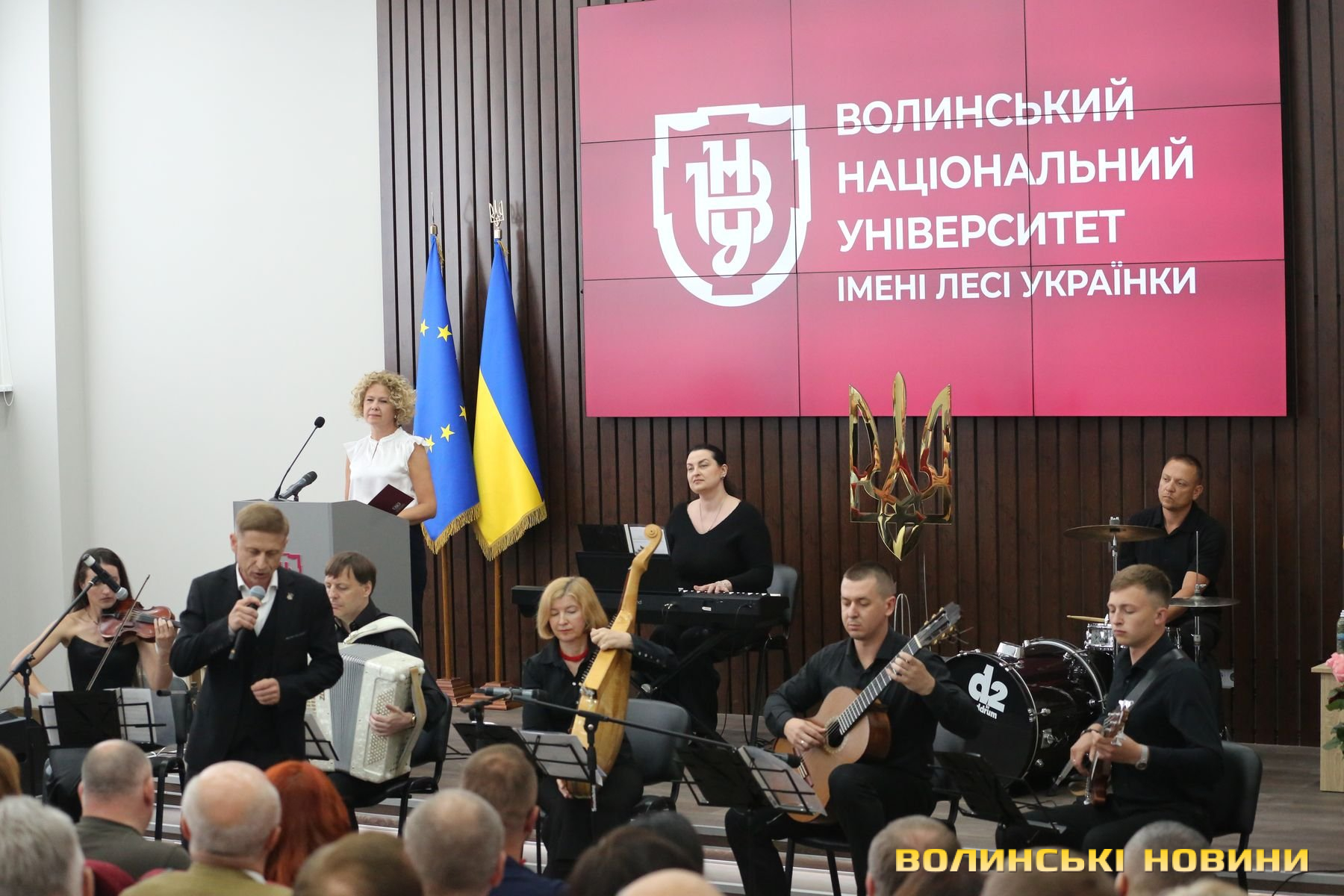 Урочистість розпочалася із пісенного виступу Заслуженого артиста України Олега Гончара під акомпанемент музичного колективу факультету культури й мистецтв «Асторія». Далі лунала «Мелодія» Мирослава Скорика від скрипальки Марини Косинець.Читати ще: «Головне, що ми не лише зберегли, а й розвинули університет». Ректор ВНУ Анатолій Цьось підсумував п’ятирічну каденцію. Інтерв’ю