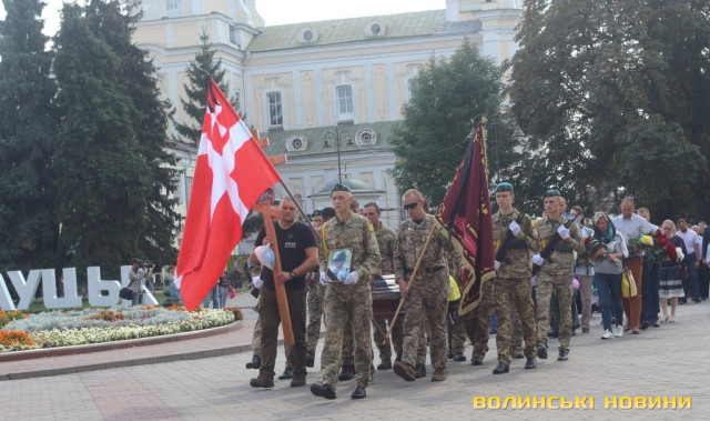 Після громадянської панахиди лучани вирушили скорботною ходою за труною з тілом загиблого проспектом Волі. Поховають Олександра Білоуса на Алеї почесних поховань міського цвинтаря у селі Гаразджа.