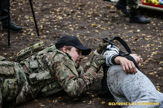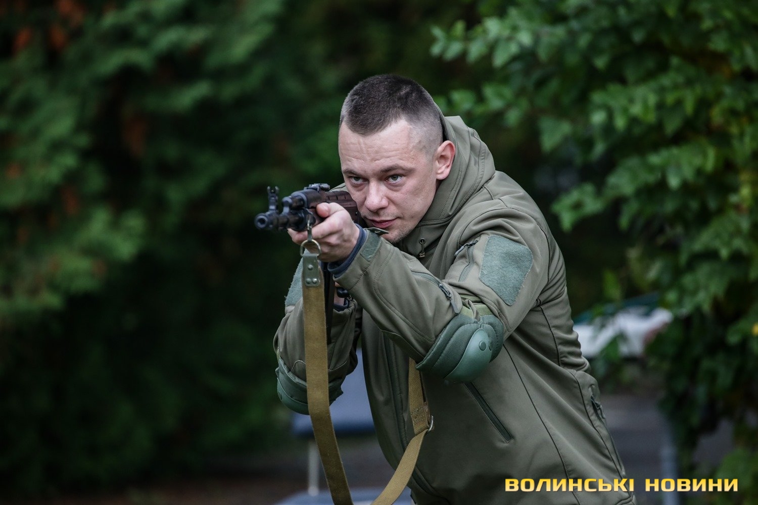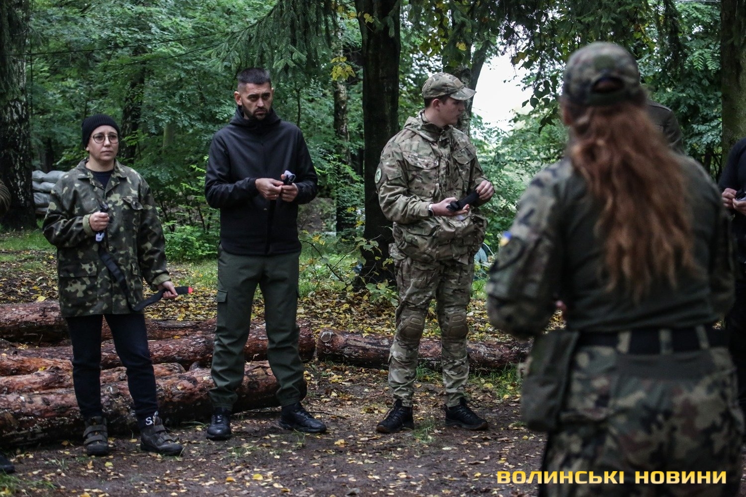 Сьогодні ж вони ділилися своїми знаннями з цивільними волинянами, які не мали жодного військового досвіду. Тактико-спеціальна підготовка (маніпуляції зі зброєю та реакція на загрозу), тактична медицина та дрони – те, що цивільні повинні були пройти за день.«Ми не хочемо робити з цивільних командос»