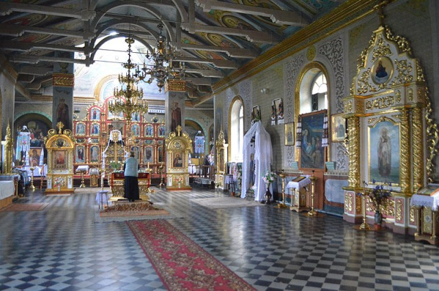 Несподівано було побачити перекриття нави – відкриті в інтер'єр ажурні ферми. Їх середня частина складається з півкола, що має металеву стяжку. Застосування відкритої ферми не лише збагатило враження від інтер'єру, але значно зменшило вартість будівництва. Включення простору під дахом в об'єм нави дало змогу зменшити висоту її стін. Цей прийом не характерний для православних церков і заслуговує на те, щоб встановити джерело запозичення».