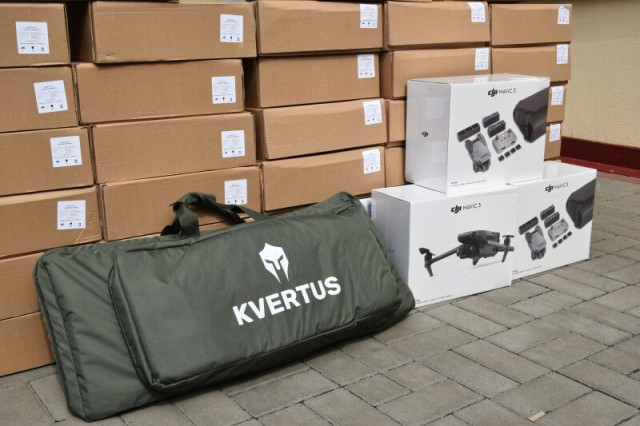 Зокрема, для потреб військової частини А1141 Національної гвардії України спрямували 20 мультироторних БпЛА типу FPV 8 дюймів та 20 безпілотних літальних апаратів «Раптор 8» з денною камерою, портативний радіоелектронний засіб протидії безпілотникам Квертус AD G-6+, три DJI Mavic 3 Fly More Combo.