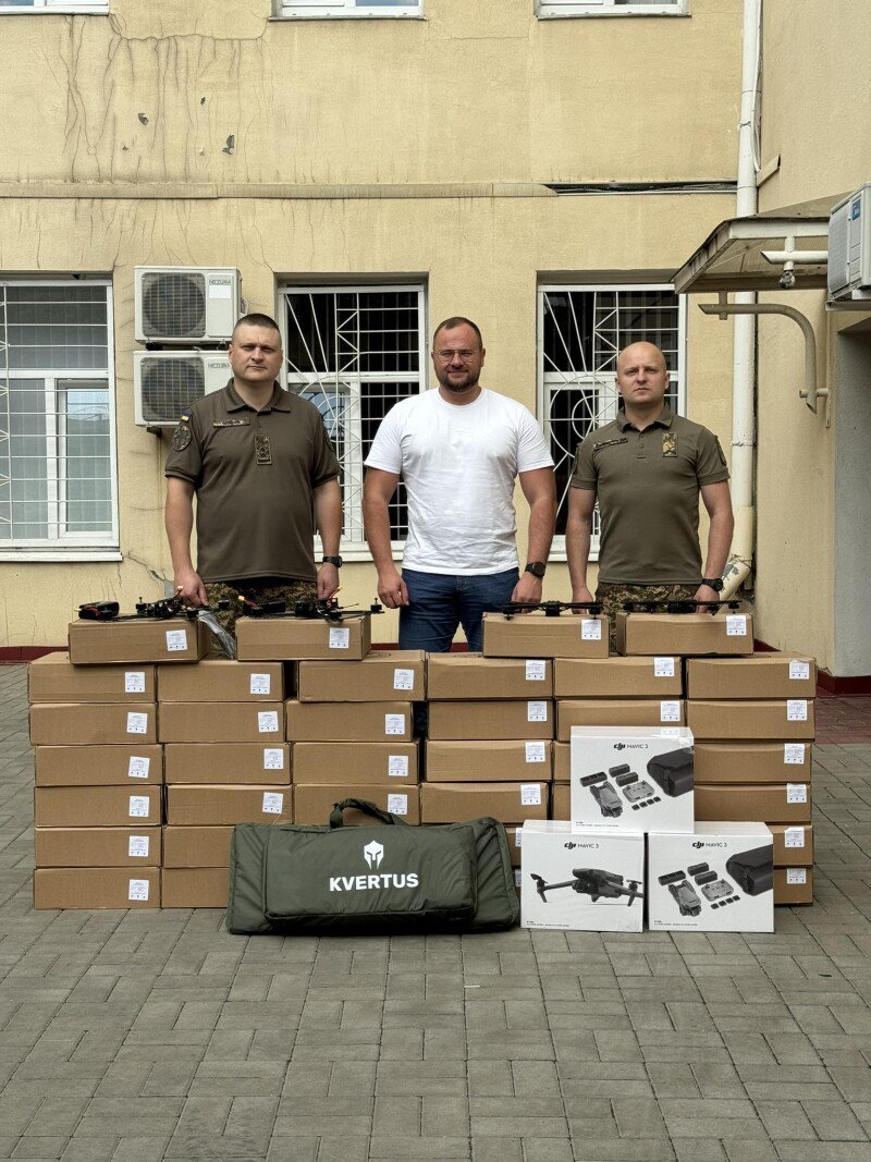 Зокрема, для потреб військової частини А1141 Національної гвардії України спрямували 20 мультироторних БпЛА типу FPV 8 дюймів та 20 безпілотних літальних апаратів «Раптор 8» з денною камерою, портативний радіоелектронний засіб протидії безпілотникам Квертус AD G-6+, три DJI Mavic 3 Fly More Combo.