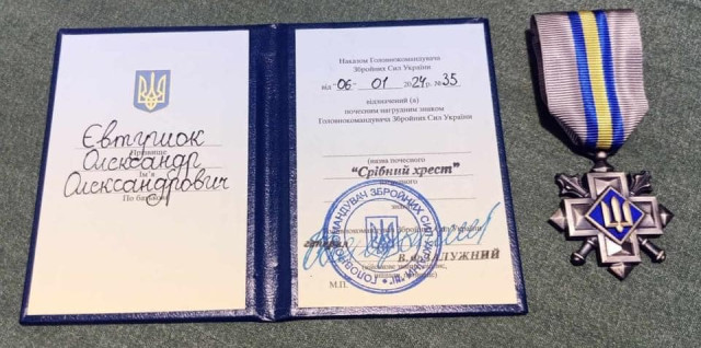Військовослужбовець із селища Турійськ, старший лейтенант Олександр Євтушок отримав високу нагороду – почесний нагрудний знак Головнокомандувача Збройних сил України «Срібний хрест».