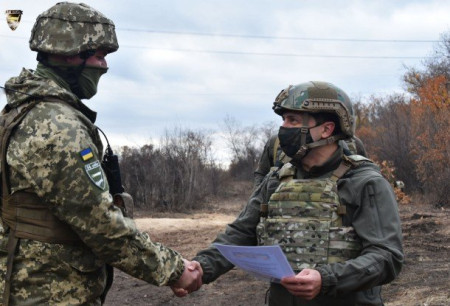 Під час робочого візиту на Луганщину Президент України Володимир Зеленський відвідав підрозділи 14 окремої механізованої бригади імені князя Романа Великого, яка виконує завдання за призначенням в складі операції Об'єднаних сил.
