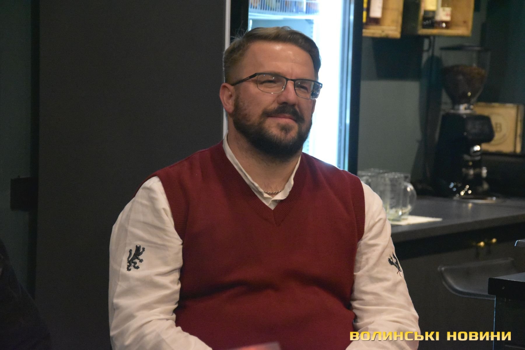 Відвідав презентацію книги колишній військовий, а нині радник Луцького міського голови з питань роботи з ветеранами Тарас Сасовський. Каже: втішений, коли бачить, як воїни після поранень знаходять себе в інших справах у цивільному житті.