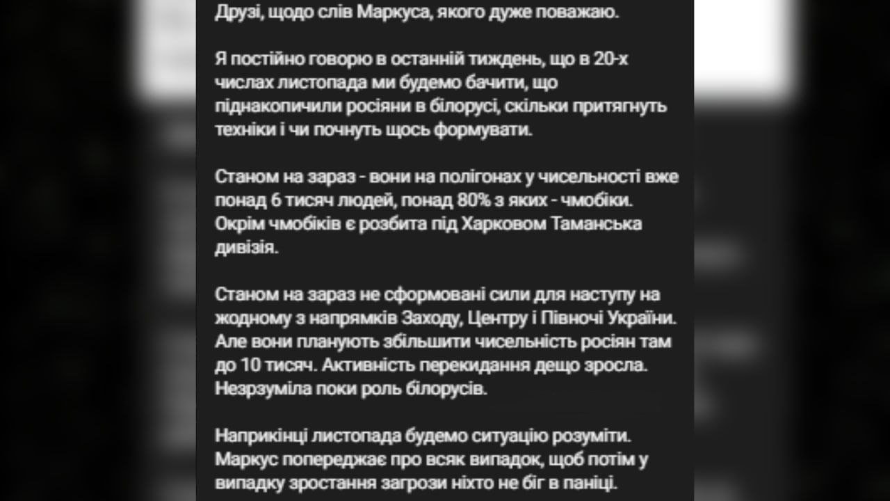 Читати ще: Наразі все спокійно: голови Рівненської та Волинської ОВА повідомили про ситуацію на кордоні з БілоруссюПізніше військовий експерт Андрій Коваленко прокоментував його слова, заявивши, що Маркус попереджає про всяк випадок.
