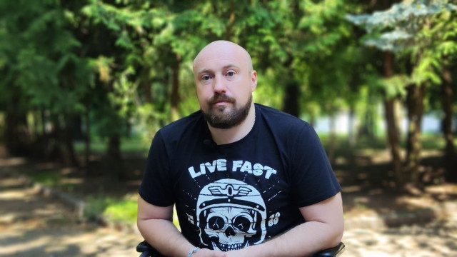 Військовослужбовець Тарас Сасовський у Луцькому центрі реабілітації готується до протезування ніг. Чоловік родом із Луцька, йому 43. Як розповів Суспільному, у цивільному житті багато років працював у Польщі, згодом організував власний бізнес.