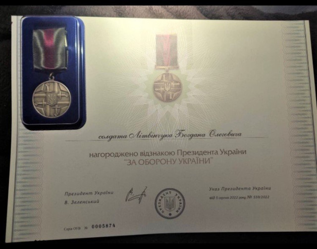 Жителя села Рованці Луцького району Богдана Олеговича Літвінчука нагородили відзнакою «За оборону України».