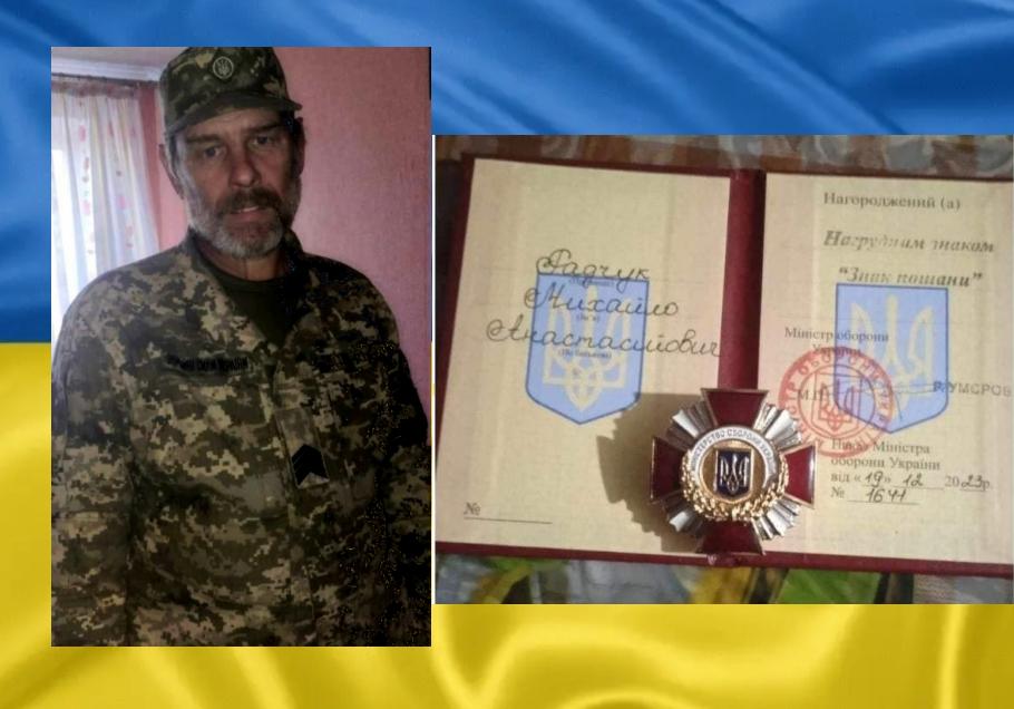 Міністерство оборони України відзначило волинянина, військовослужбовця 118-ї окремої механізованої бригади Михайла Радчука нагрудним знаком «Знак пошани».