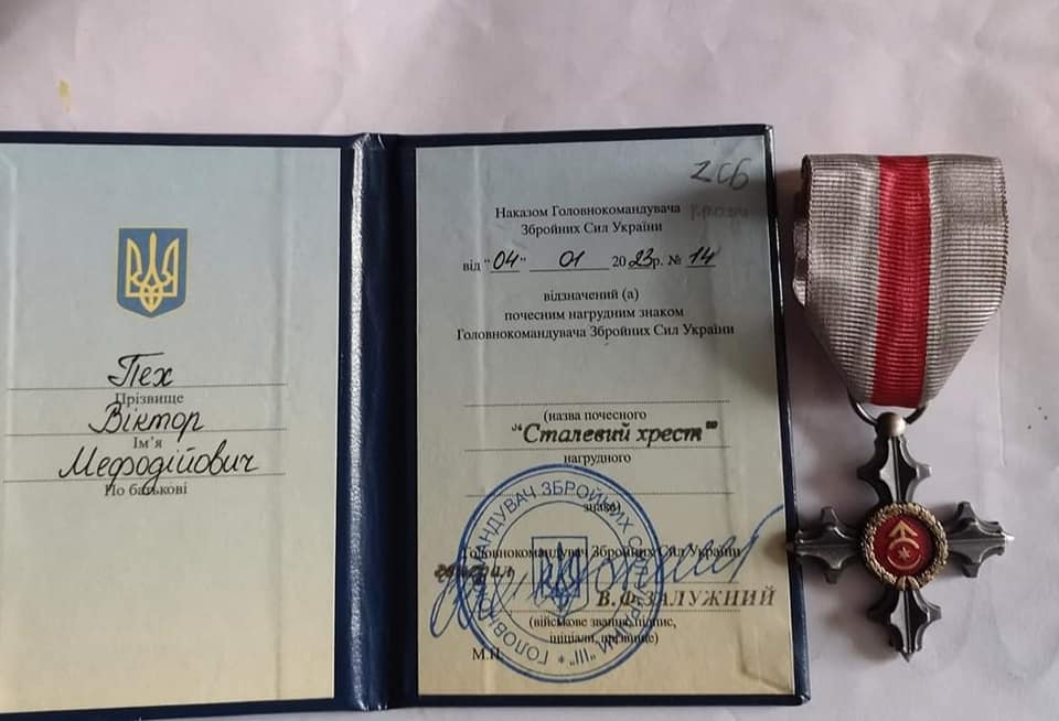 «Головнокомандувач Збройних сил України Валерій Залужний нагородив нашого земляка, військовослужбовця Віктора Пеха почесною нагрудною відзнакою «Сталевий Хрест»», – йдеться в повідомленні.