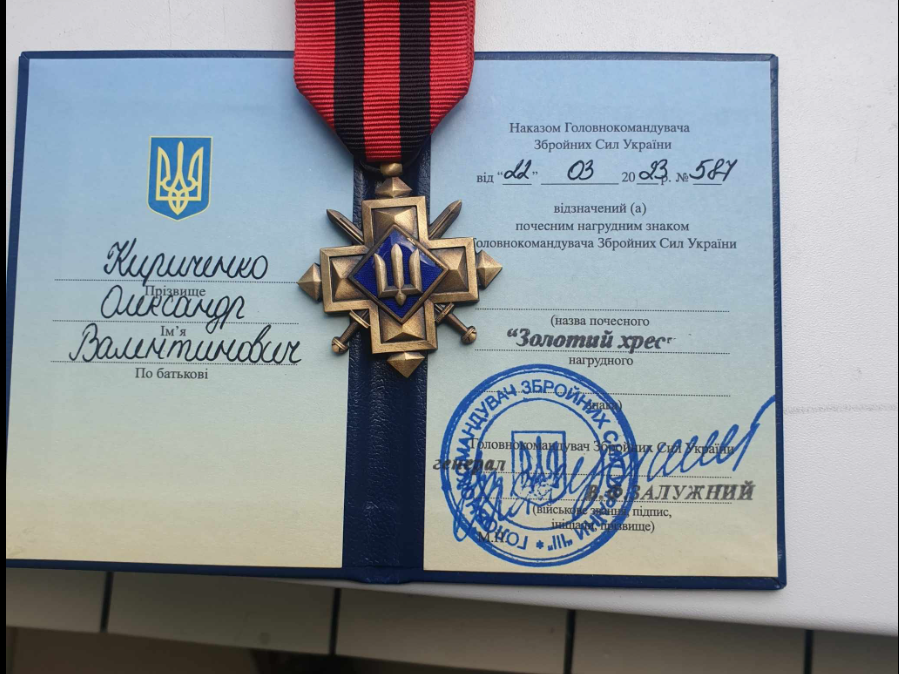 Військовослужбовець Олександр Кириченко, який родом із села Дуліби Турійської громади, отримав відзнаку «Золотий хрест» від Головнокомандувача ЗСУ Валерія Залужного.