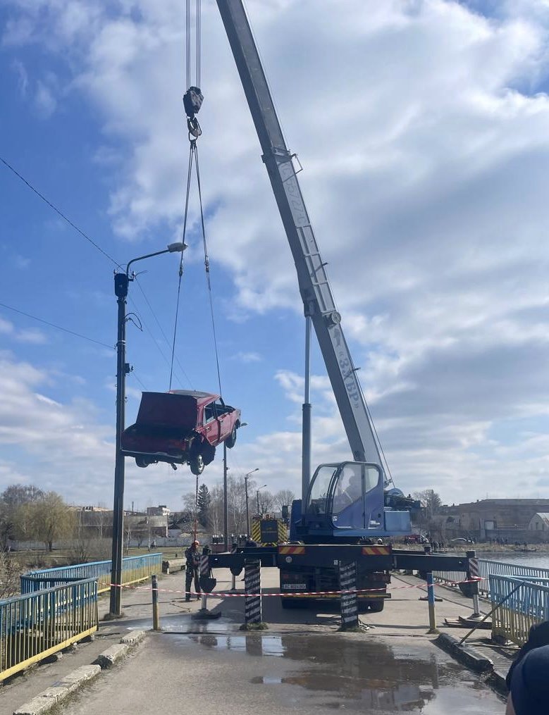 Згодом, не впоравшись із керуванням, на пішохідному мосту через річку Турію він зіткнувся з парканом та з'їхав у воду.