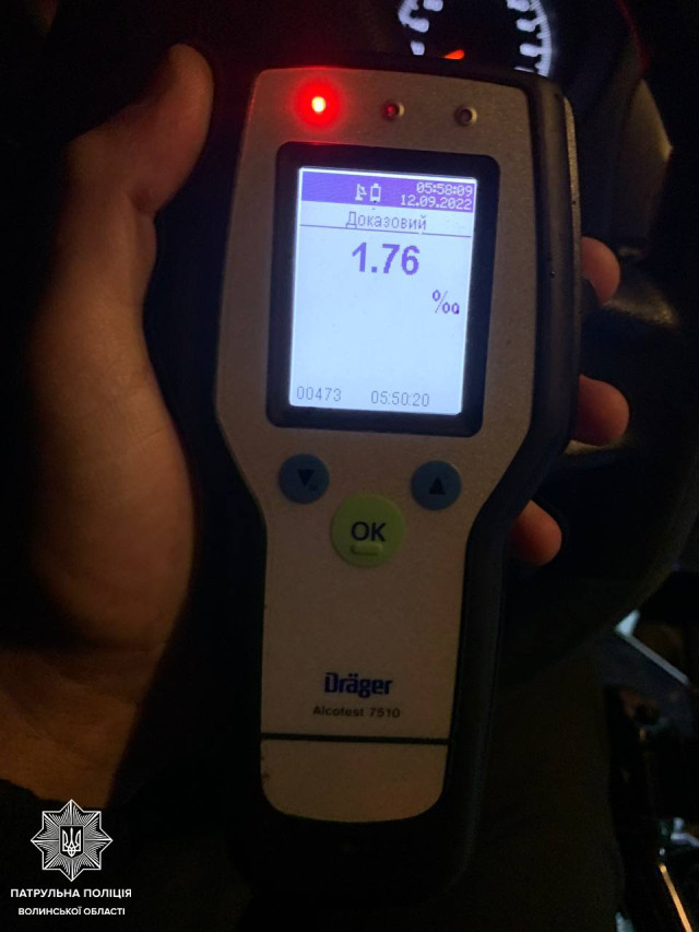 Огляд на місці події показав результат у 1,76 проміле, що майже в 9 разів перевищує допустиму норму.