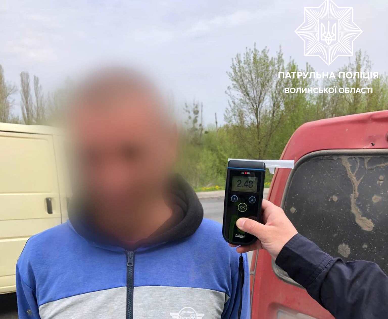 Інспектори зупинили автомобіль та під час перевірки документів у водія помітили ознаки алкогольного сп’яніння. Чоловік пройшов огляд на стан сп’яніння на місці. Прилад Drager показав 2,48 проміле, що у 12 разів перевищує допустиму норму.