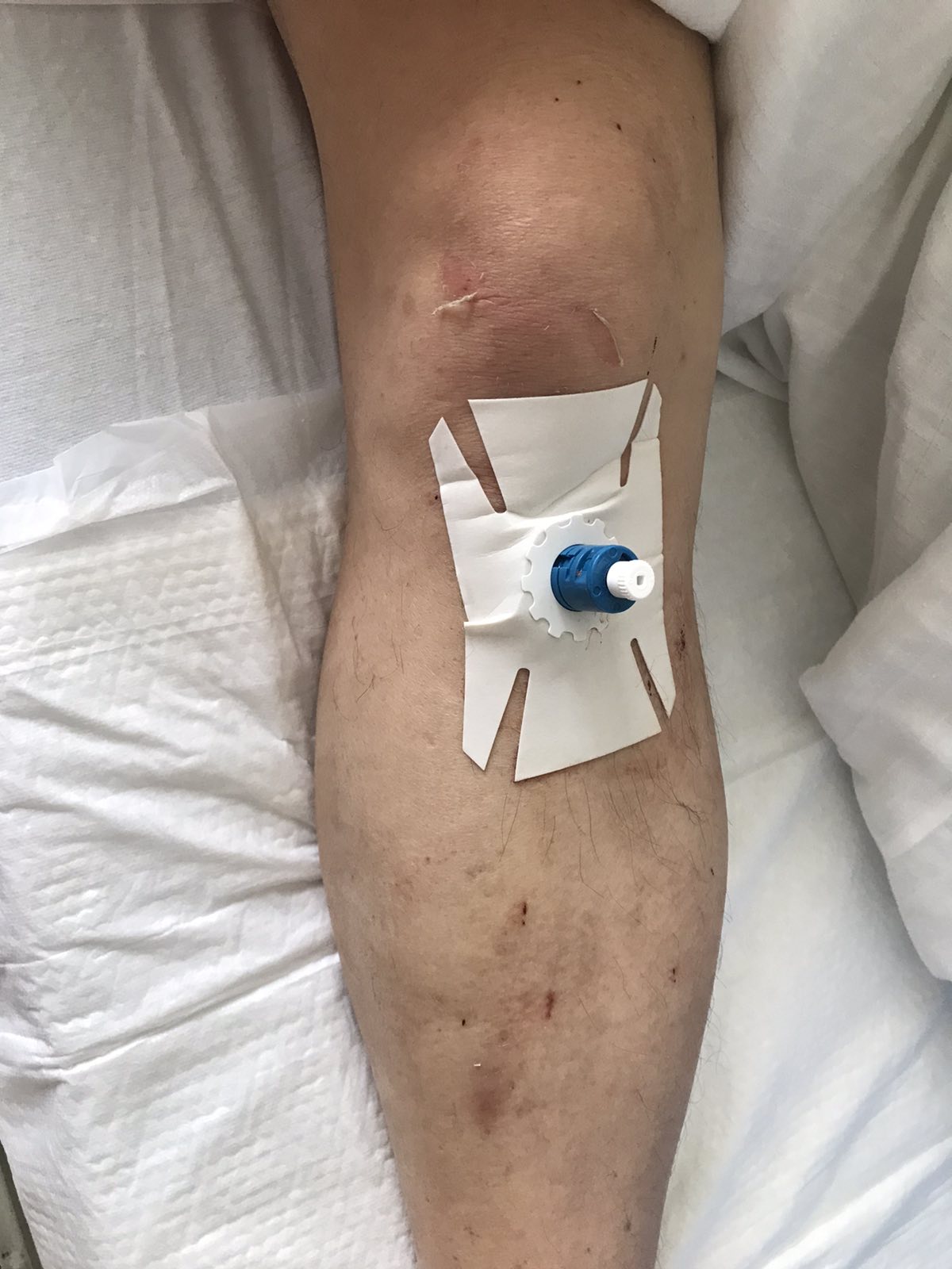 Враховуючи велику площу ураження тіла, для ведення лікарських засобів використали внутрішньокістковий доступ.