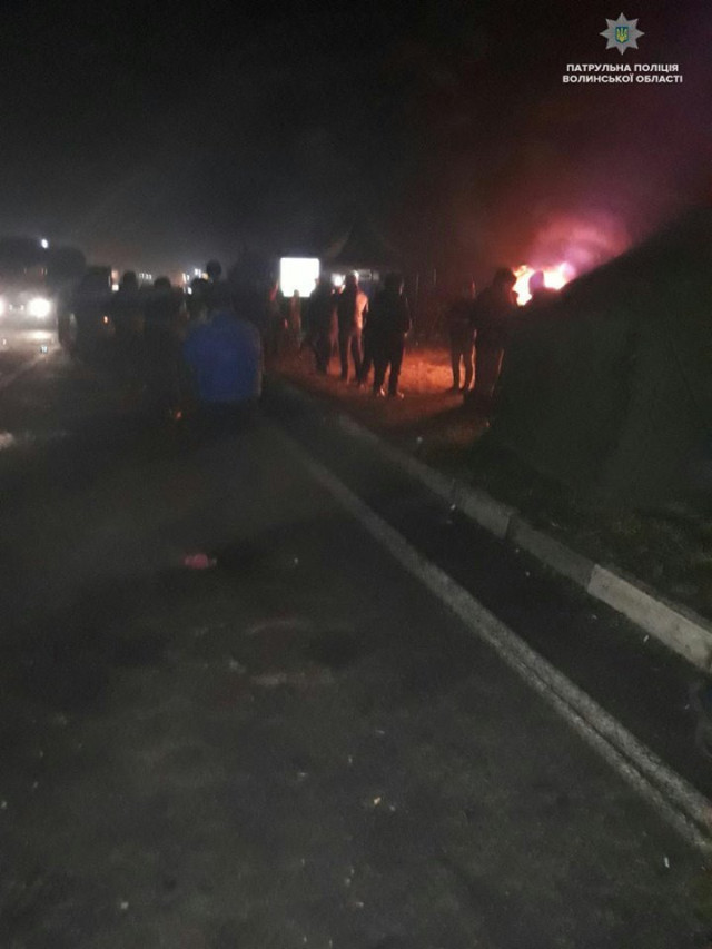 «Наразі можливе знову блокування руху автомобілів, а також збільшення кількості протестувальників. Учасники акції продовжують звозити шини. Заблоковано кілька сотень метрів автодороги М-07 Київ-Ковель-Ягодин», - повідомив з місця події інспектор Олександр Муравчук.