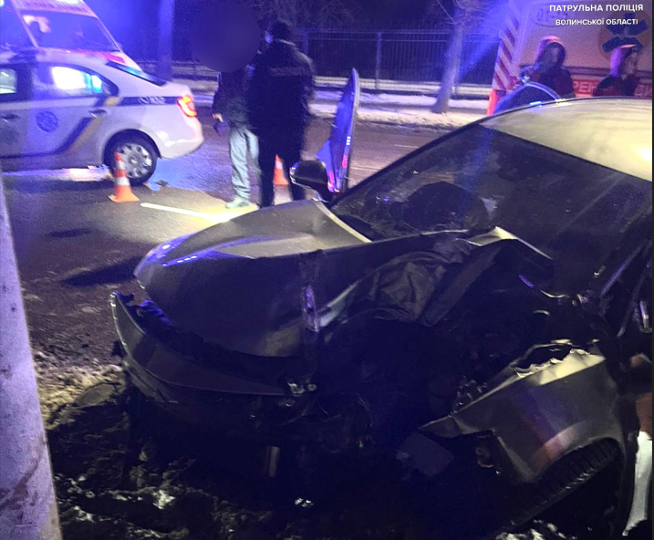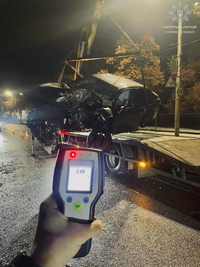 Вночі у Луцьку п'яний водій Toyota врізався у стовп