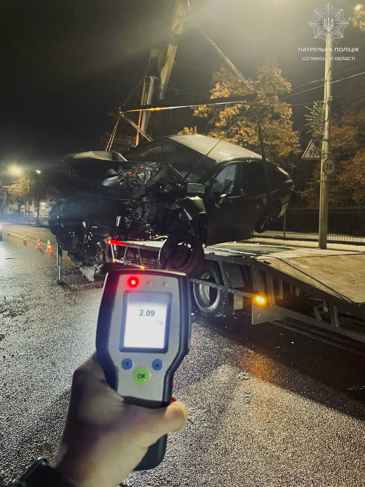 При спілкування з керманичем інспектори помітили у нього ознаки алкогольного сп’яніння та запропонували чоловіку пройти огляд за допомогою приладу Драгер. Результат – 2,09 проміле.