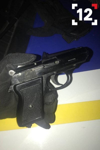 Правоохоронці, які прибули на виклик, затримали групу з чотирьох юнаків. В одного знайшли пістолет (ймовірно, стартовий) та два перцеві балончики.