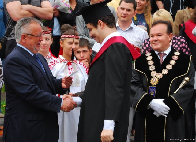 Власникам «червоних дипломів» пластиковий документ про вищу освіту вручав особисто ректор університету Ігор Коцан та голова обласної державної адміністрації Борис Клімчук.