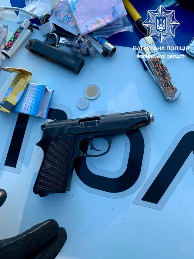 Водій був під кайфом: у Луцьку в автівці знайшли пістолет і наркотики