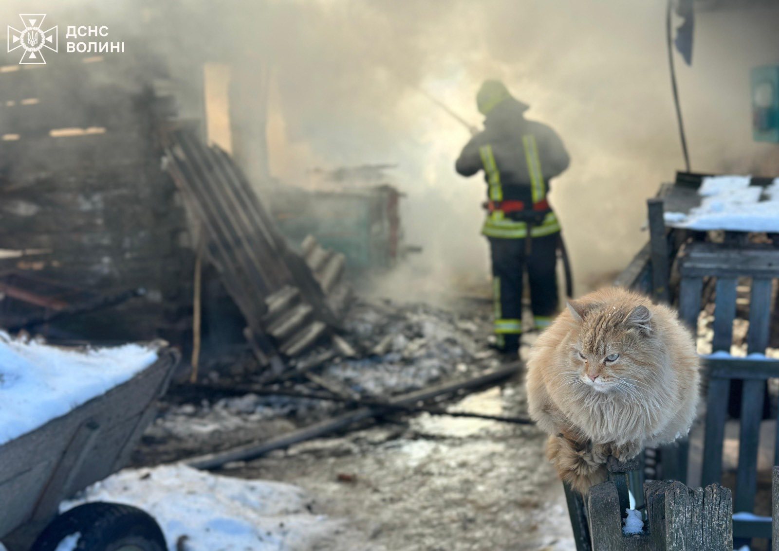 Вогнеборці врятували котика: у Локачинській громаді згоріла господарська споруда