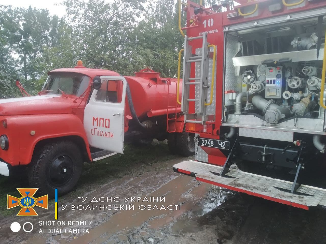 Так, вранці о 6:27 у селі Запілля Любомльської МГ через розряд блискавки зайнялася покрівля цегляного житлового будинку. Вже о 7:35 вогонь загасили працівники 10-ї ДПРЧ ГУДСНС України у Волинській області разом із працівниками місцевої пожежної охорони села Полапи. Полум’ям знищено 40 м² покрівлі, 6 м² перекриття, 30м² металевого листа, пошкоджено 150 м² перекриття, речі домашнього вжитку, 30 м² оздоблення стін, 100 м² оздоблення стелі.