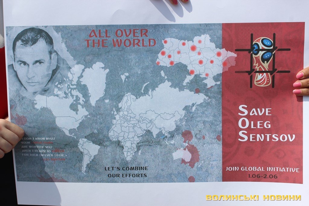 Два десятки лучан зібралися у центрі міста у рамках світової акції #SaveOlegSentsov на підтримку українського режисера Олега Сенцова, який перебуває у полоні росіян. Активісти хочуть привернути до проблеми увагу світової спільноти та вимагають у Росії відпустити на волю безневинних людей.