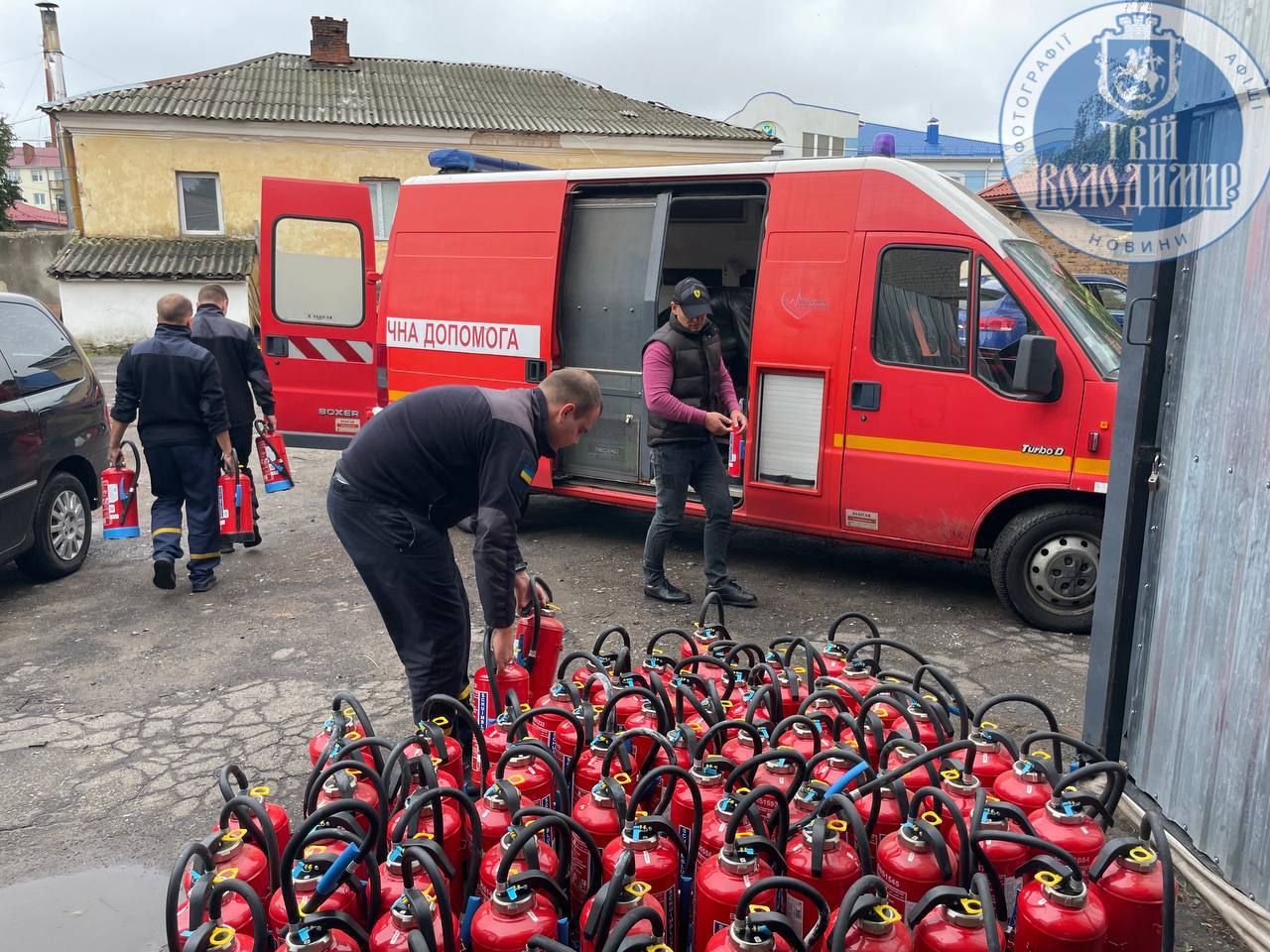 Рятувальники ДПРЧ-7 Володимира допомогли розвантажити і доправити вогнегасники за призначенням.