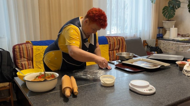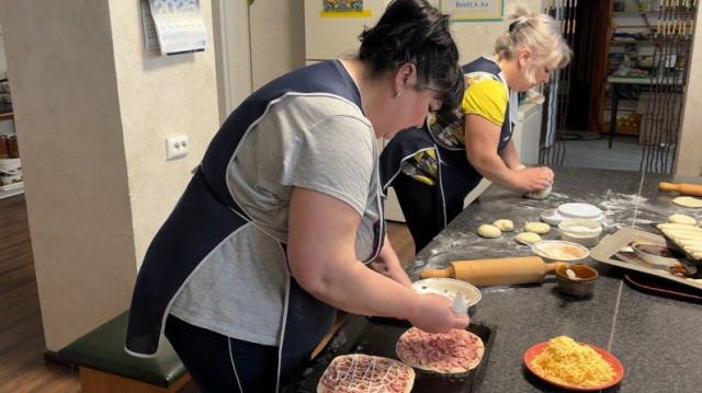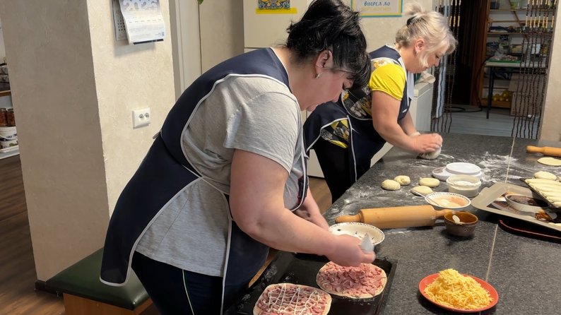 Об 11:00 на волонтерську кухню починають сходитися пенсіонери та переселенці. Господині щодня готують обіди й для них.«Спецзамовлення – пиріжки з капустою, дуже смачні. В них всі пиріжки смачні і піца, але моя пристрасть – з капустою», – каже переселенка з Бахмута Вікторія Сас.