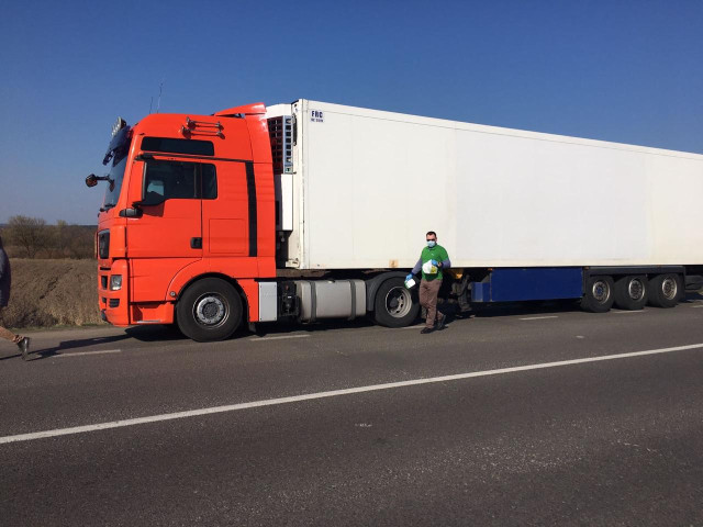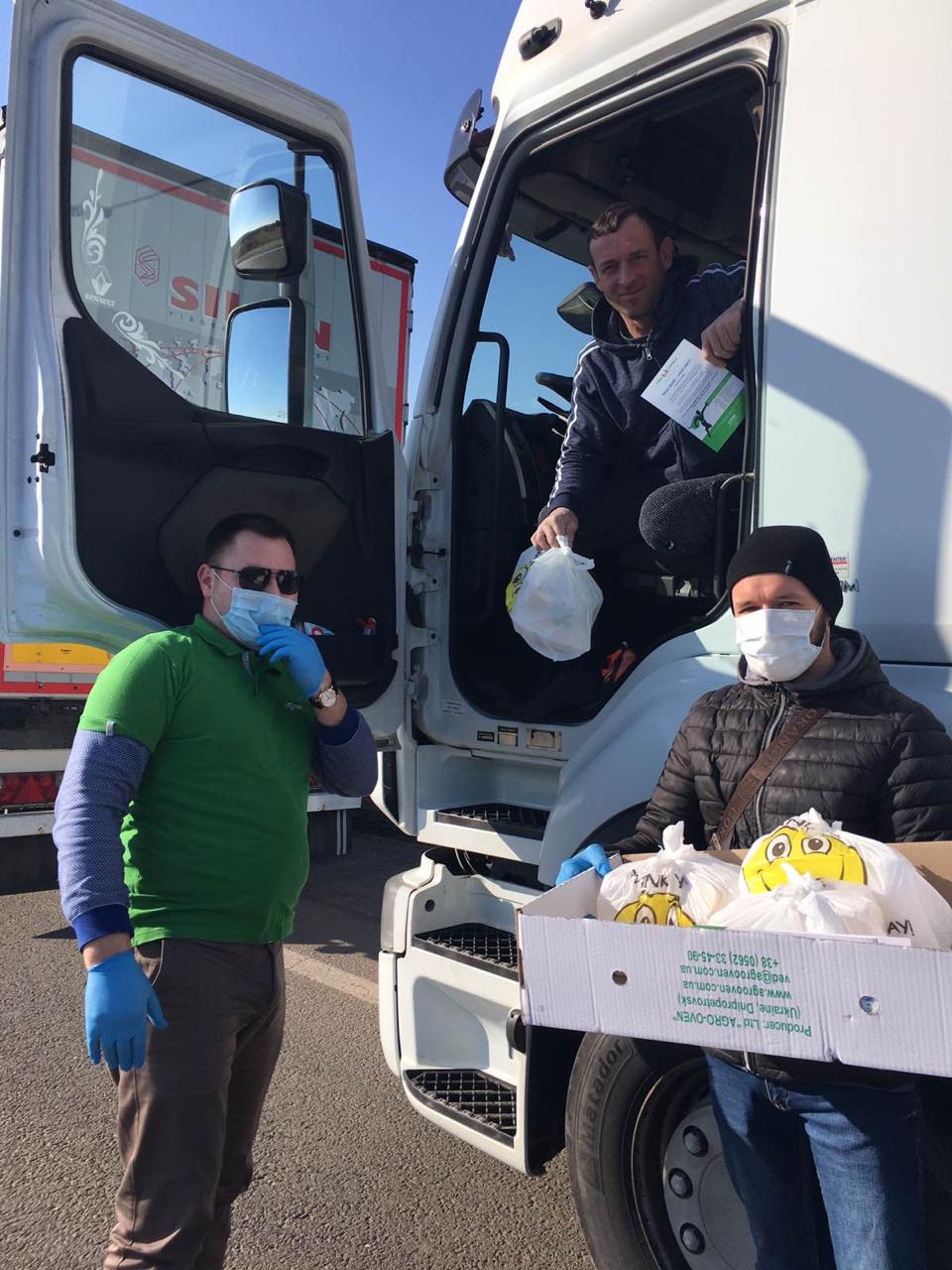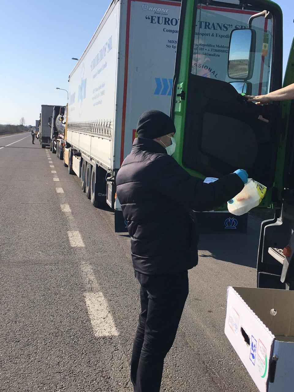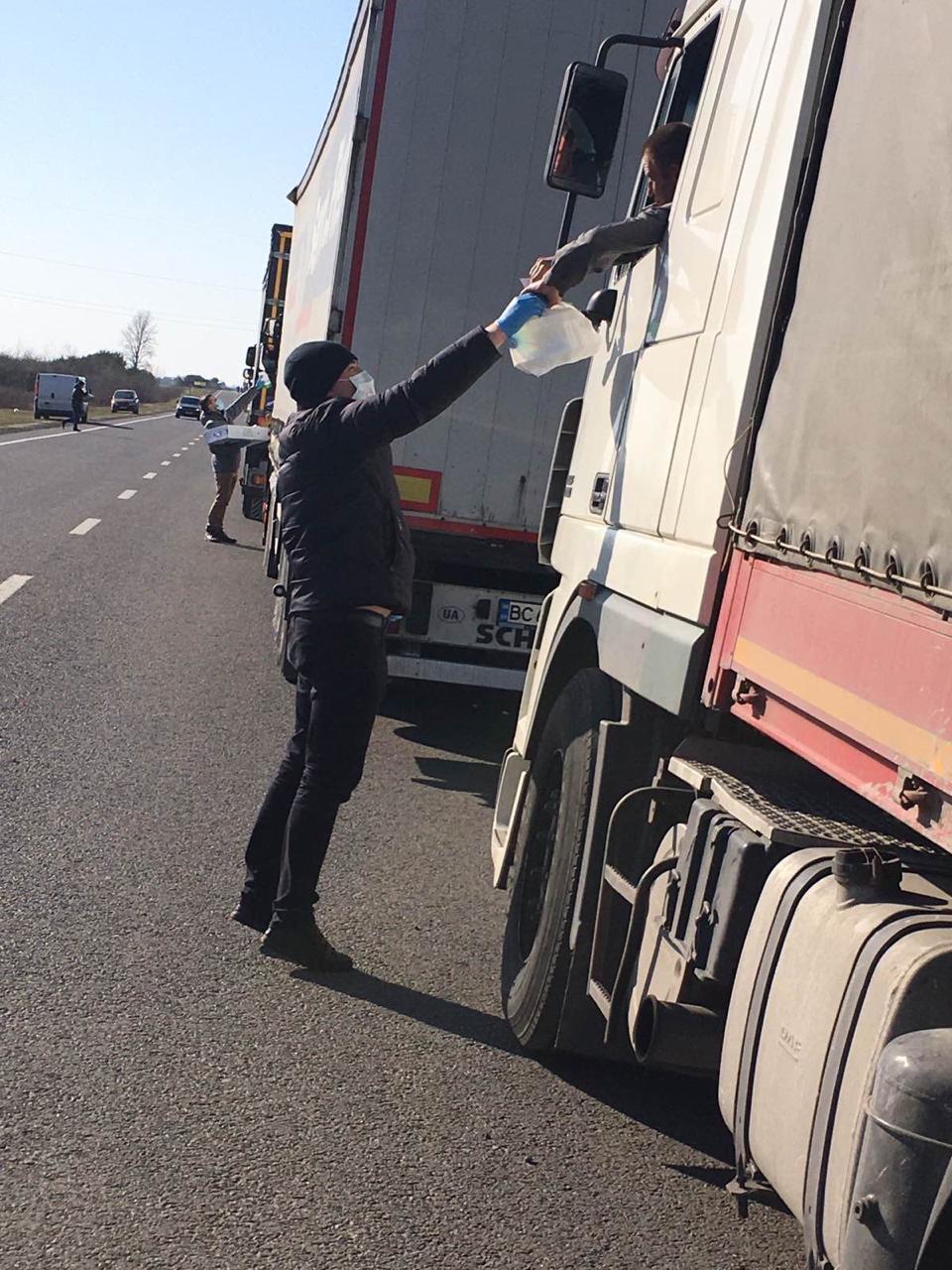 Волонтери нагодували обідом далекобійників, які очікують в чергах на кордоні